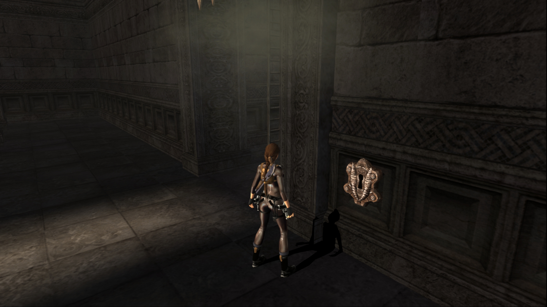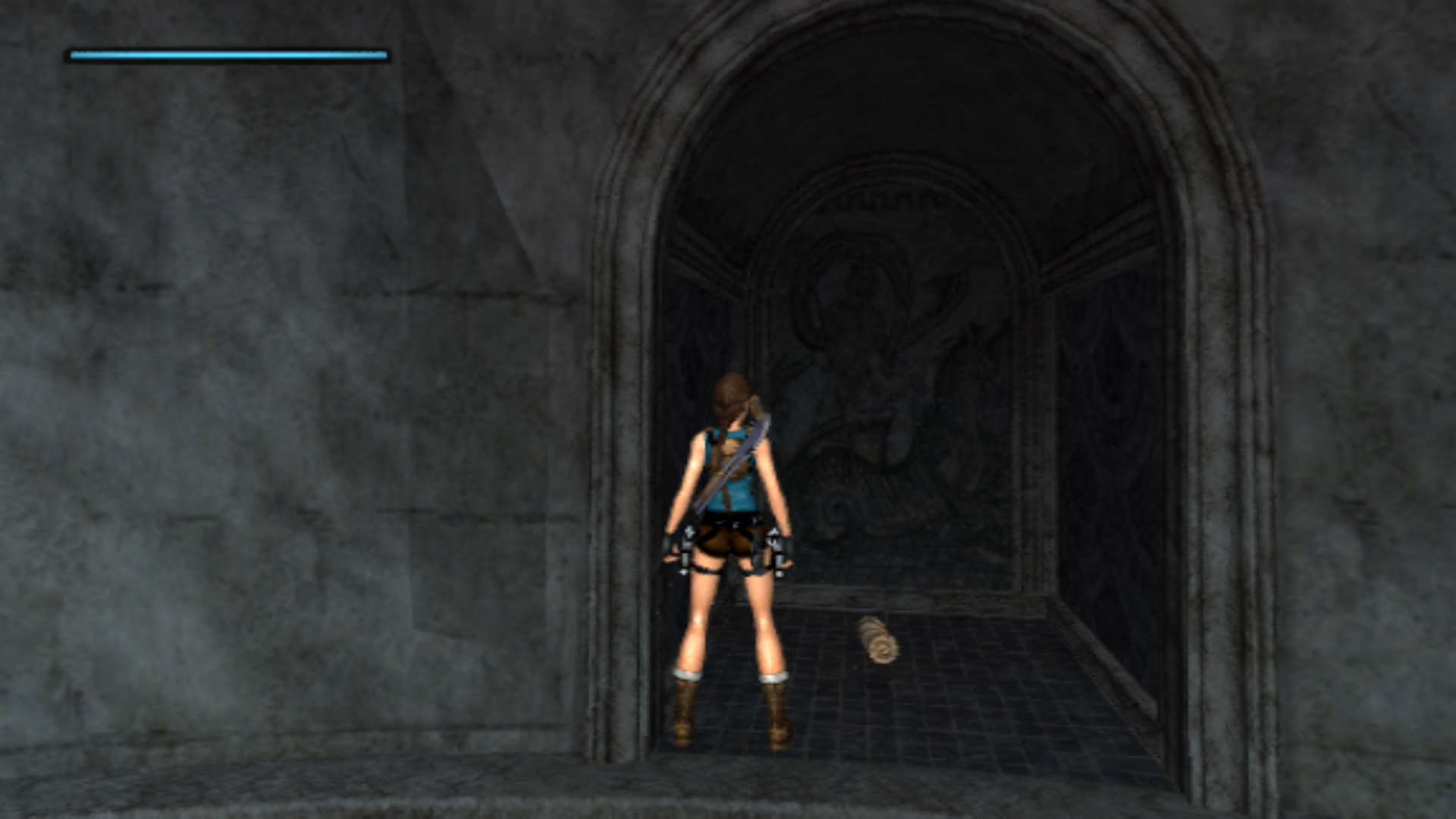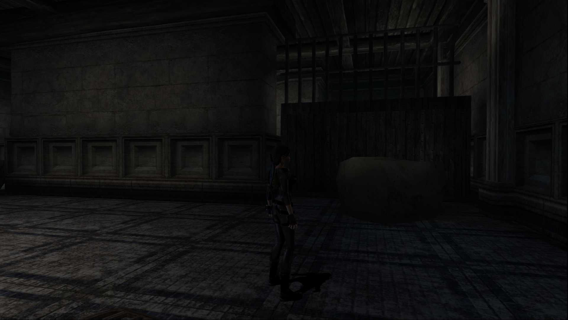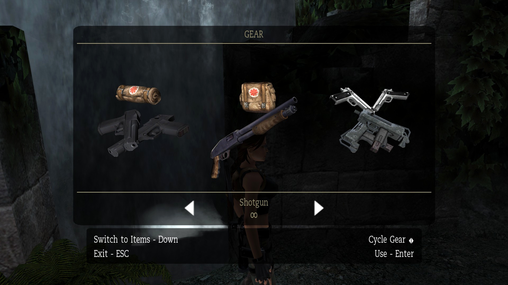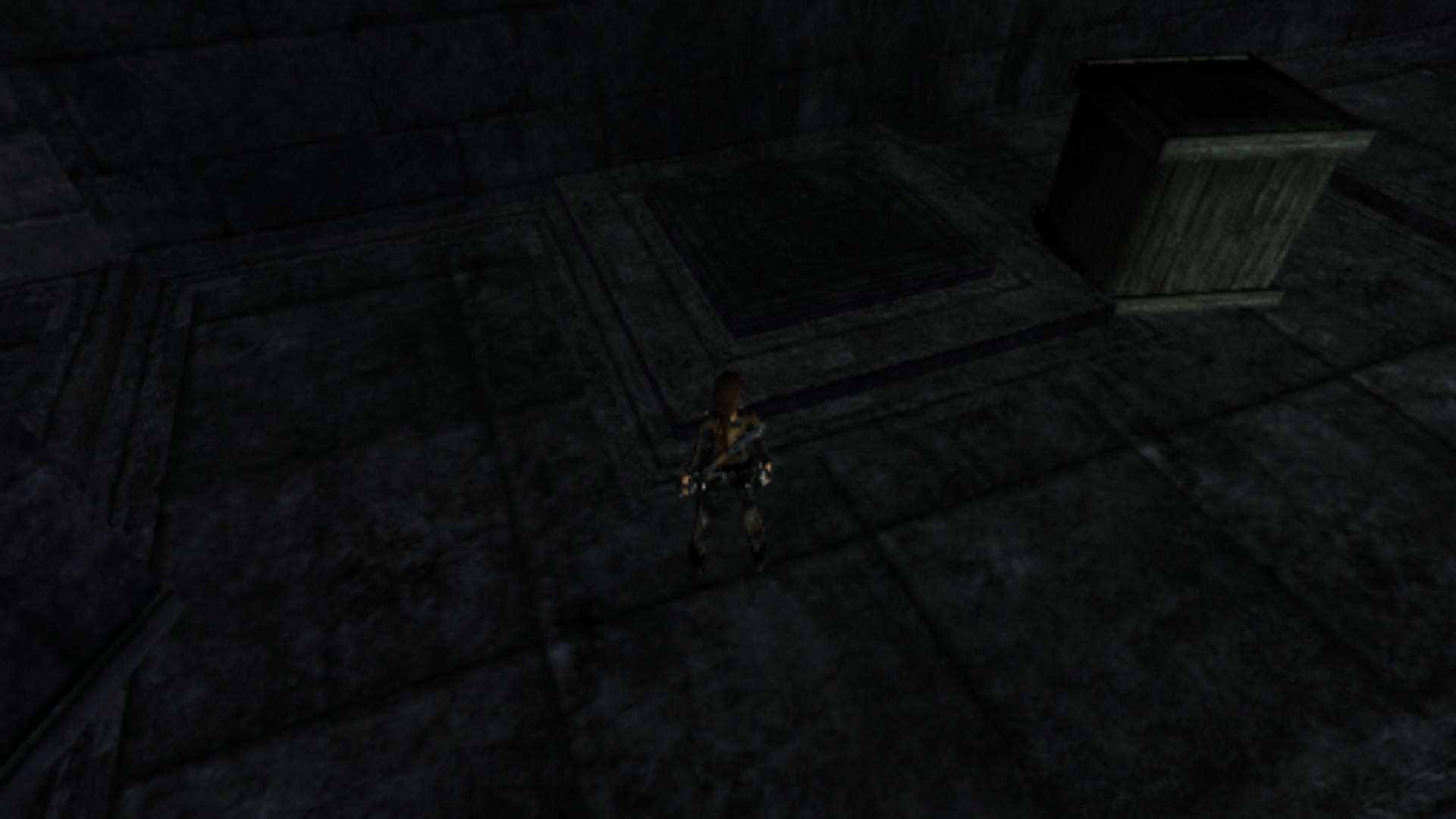 Итак, первым, куда я смог телепортироваться, оказалась тестовая комната, подобную которой можно найти в Tomb Raider: Legend. В этой комнате, на сей раз, есть кое-что интересное – вырезанное оружие. Всего на полу два оружия: дробовик и автомат. Напомню, что в числе оружий Лары только УЗИ были скорострельными.
