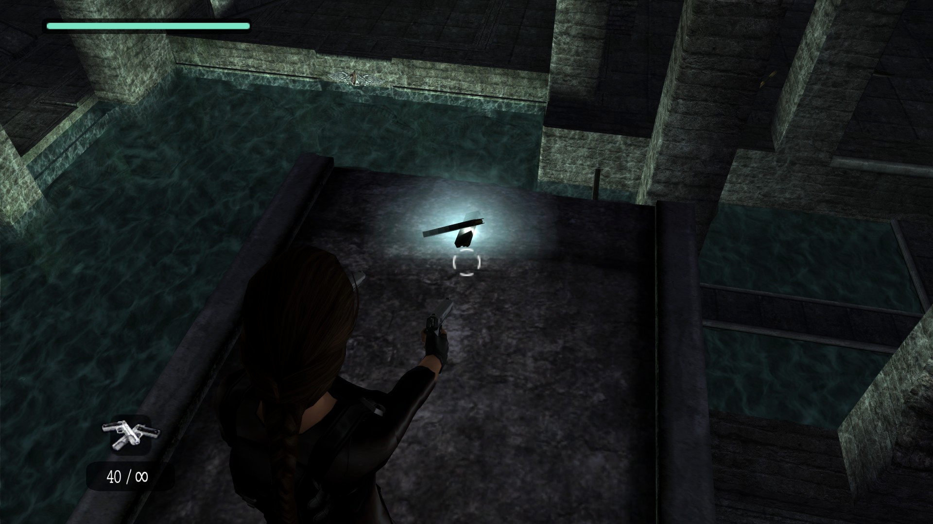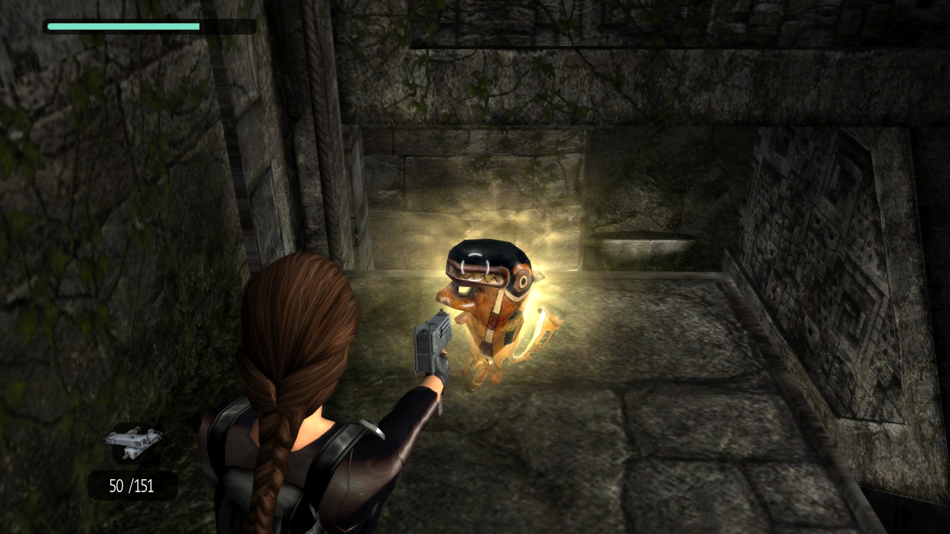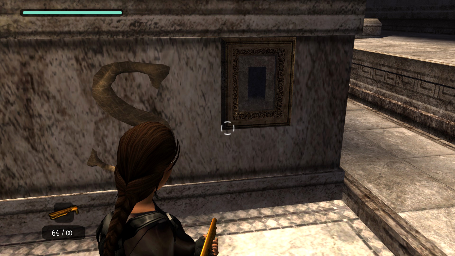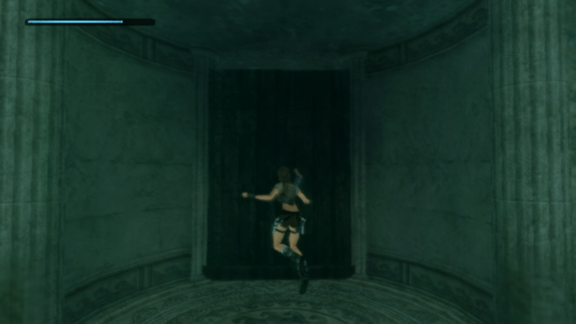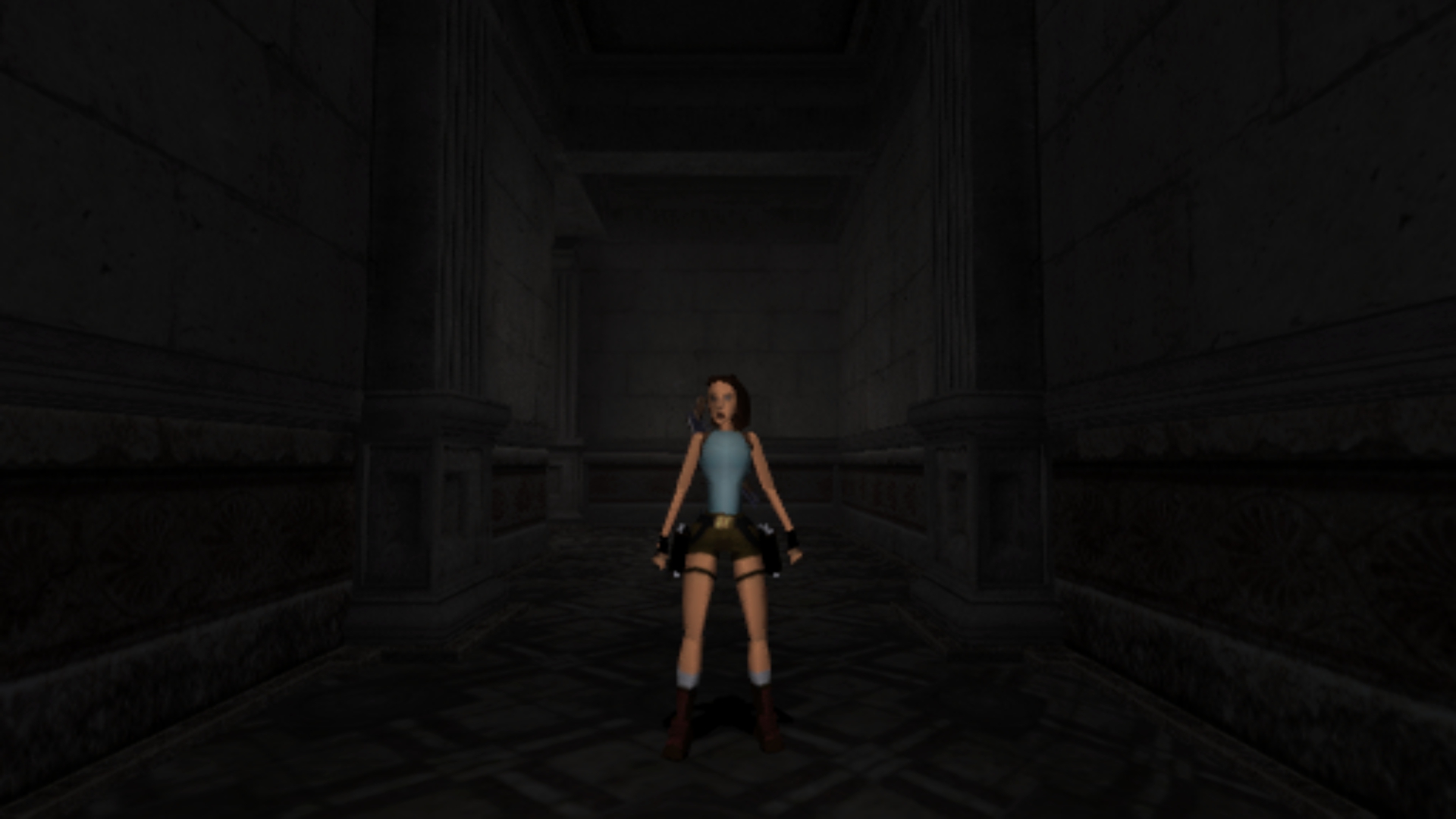Итак, первым, куда я смог телепортироваться, оказалась тестовая комната, подобную которой можно найти в Tomb Raider: Legend. В этой комнате, на сей раз, есть кое-что интересное – вырезанное оружие. Всего на полу два оружия: дробовик и автомат. Напомню, что в числе оружий Лары только УЗИ были скорострельными.