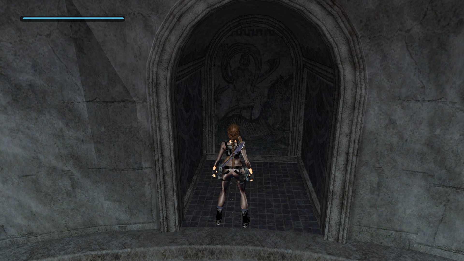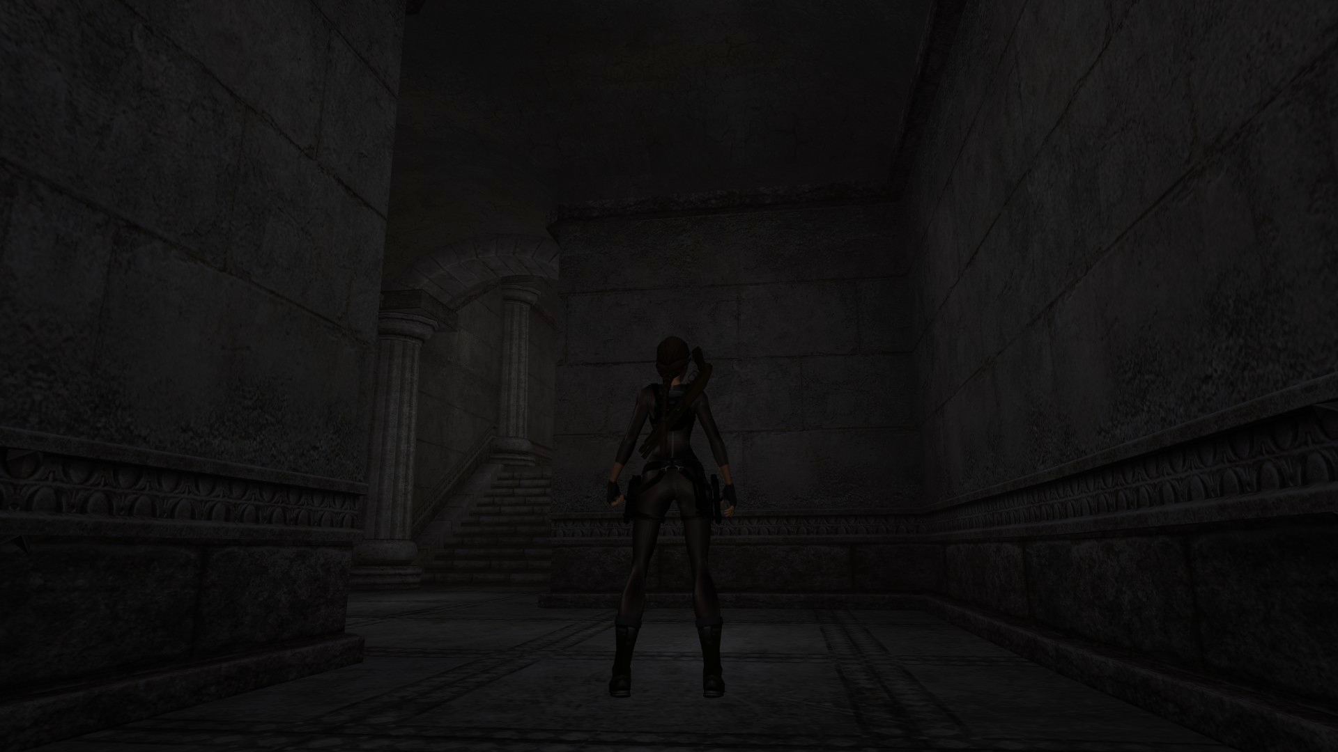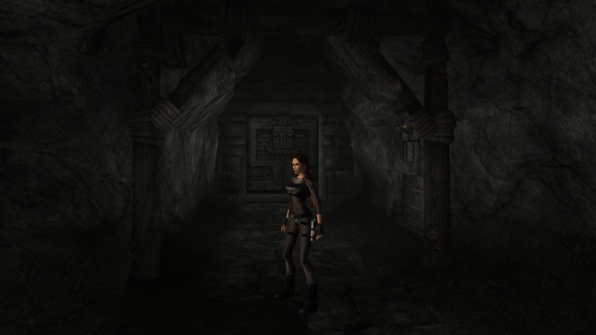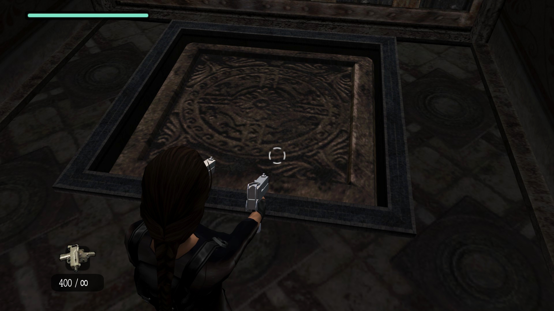 Итак, первым, куда я смог телепортироваться, оказалась тестовая комната, подобную которой можно найти в Tomb Raider: Legend. В этой комнате, на сей раз, есть кое-что интересное – вырезанное оружие. Всего на полу два оружия: дробовик и автомат. Напомню, что в числе оружий Лары только УЗИ были скорострельными.