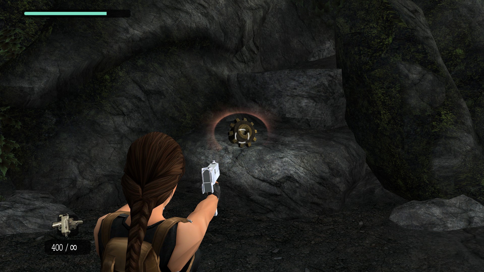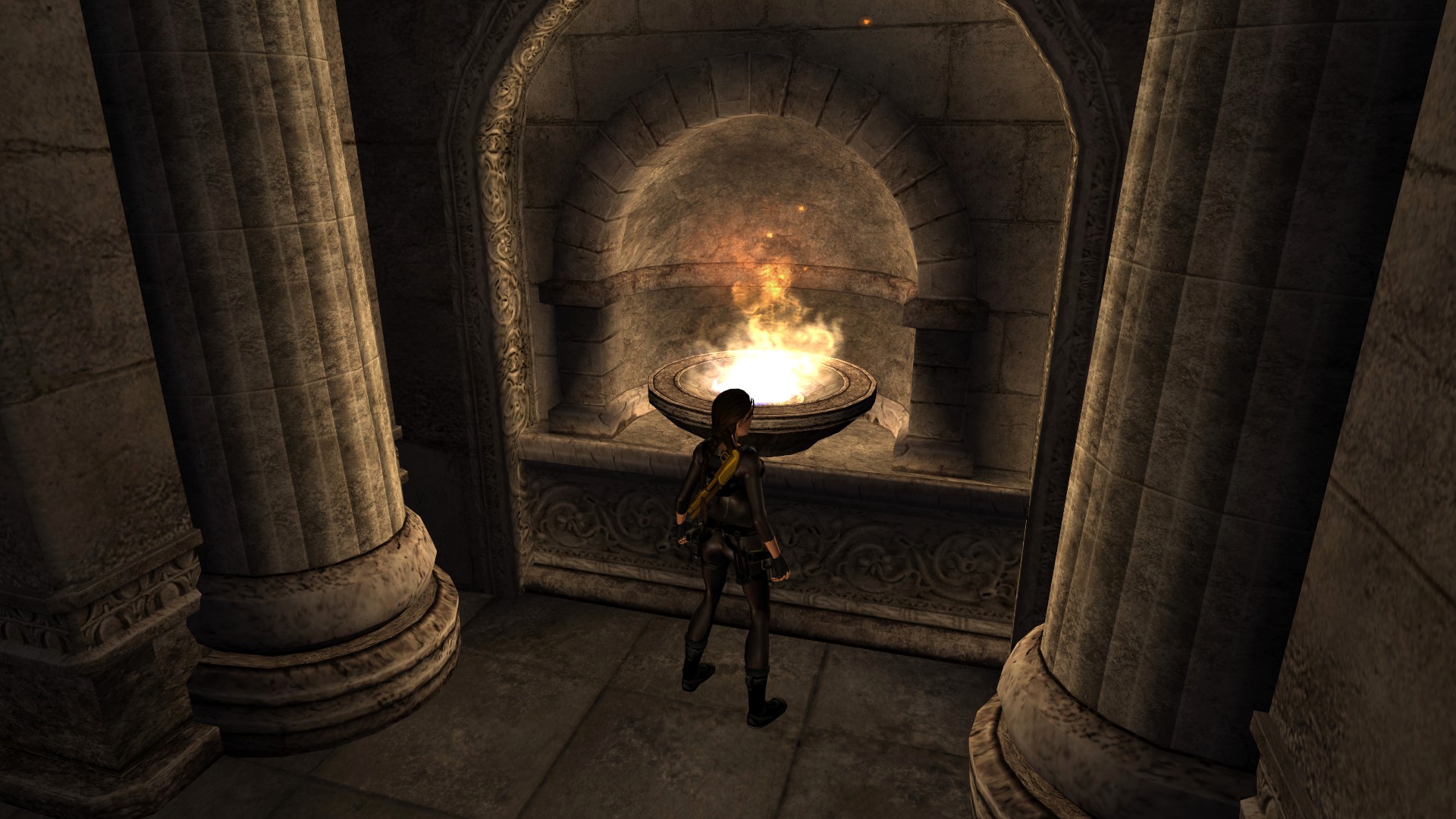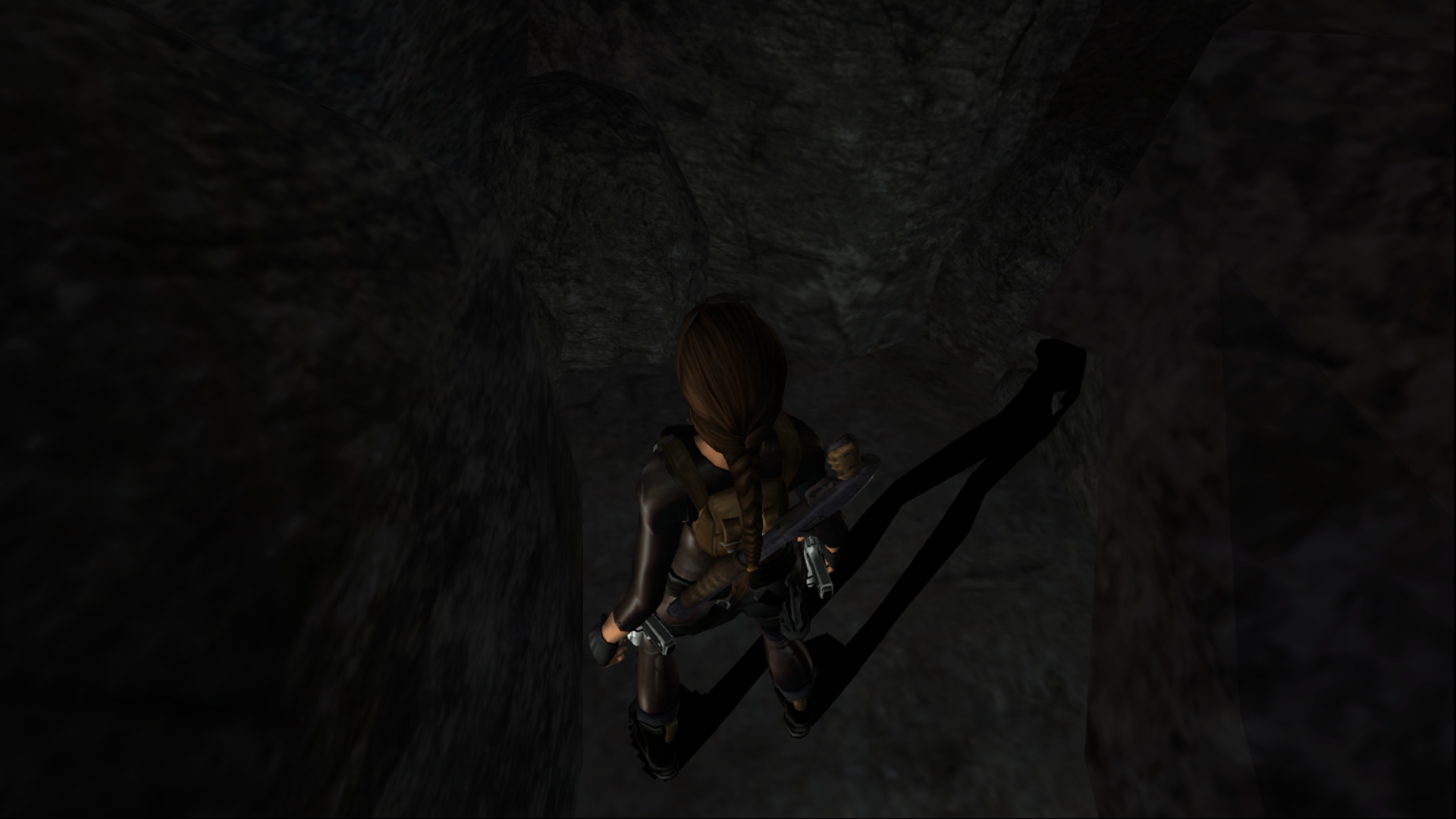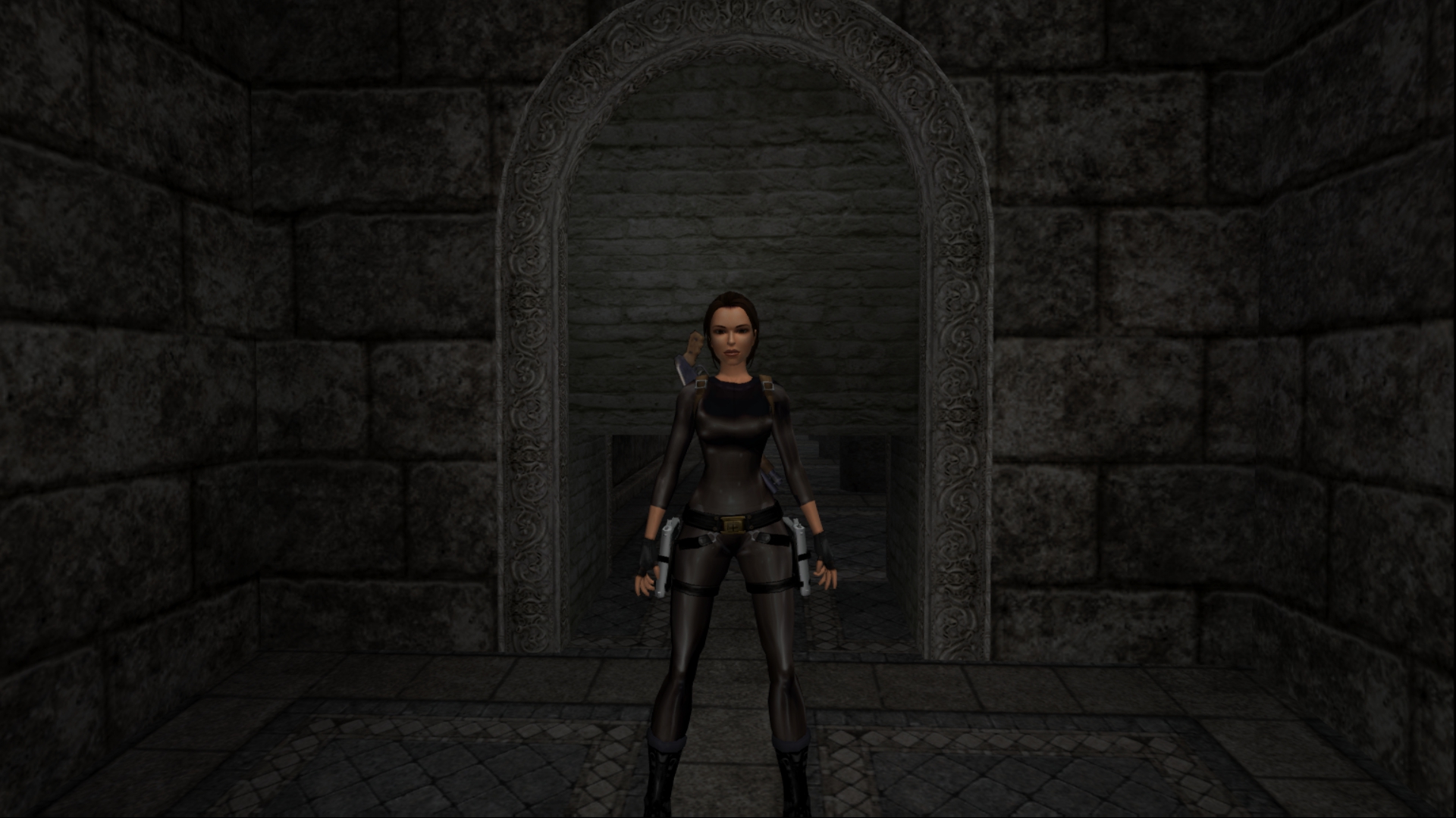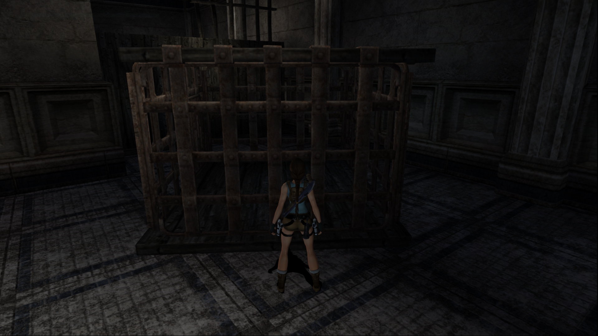 Итак, первым, куда я смог телепортироваться, оказалась тестовая комната, подобную которой можно найти в Tomb Raider: Legend. В этой комнате, на сей раз, есть кое-что интересное – вырезанное оружие. Всего на полу два оружия: дробовик и автомат. Напомню, что в числе оружий Лары только УЗИ были скорострельными.