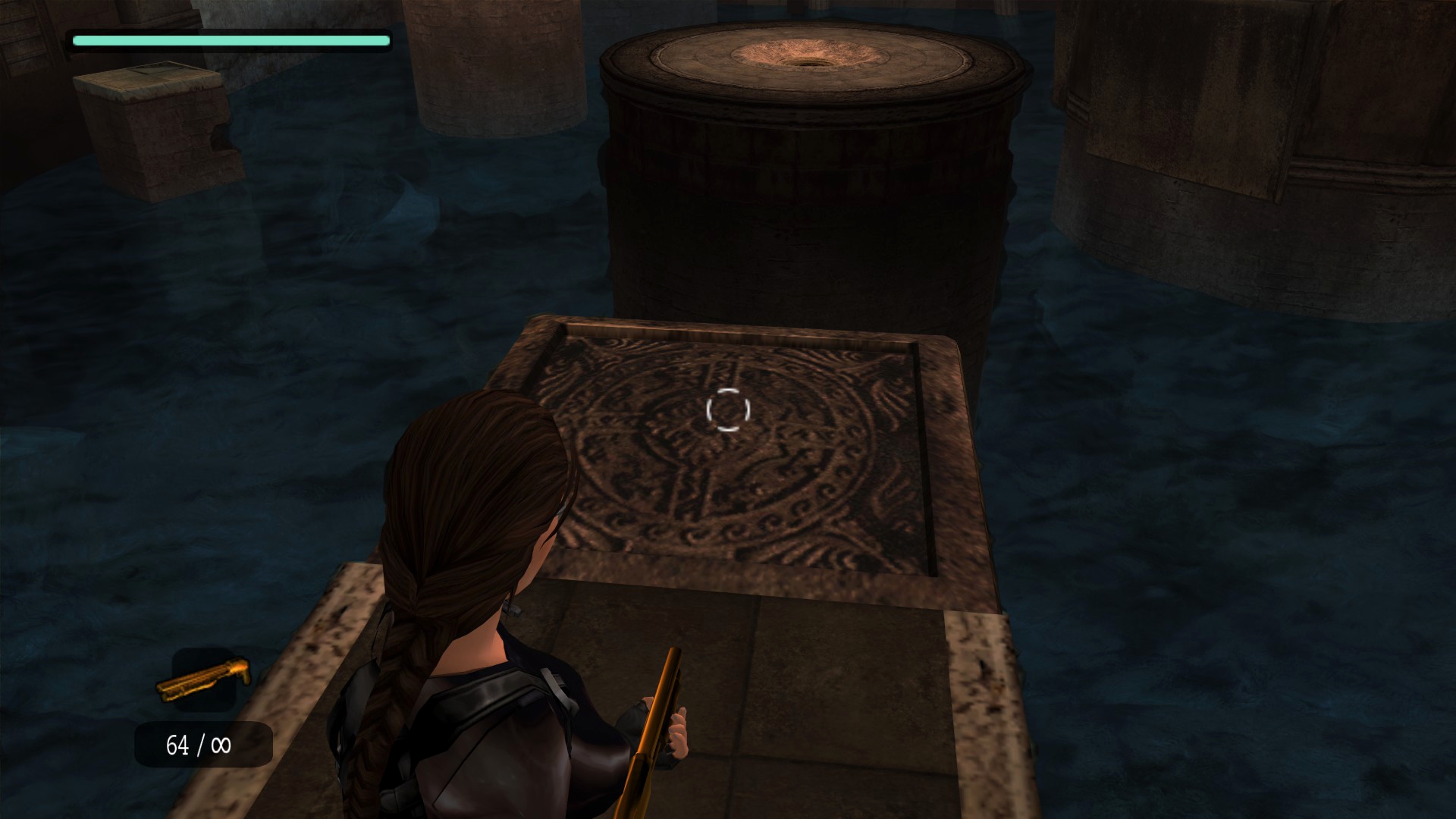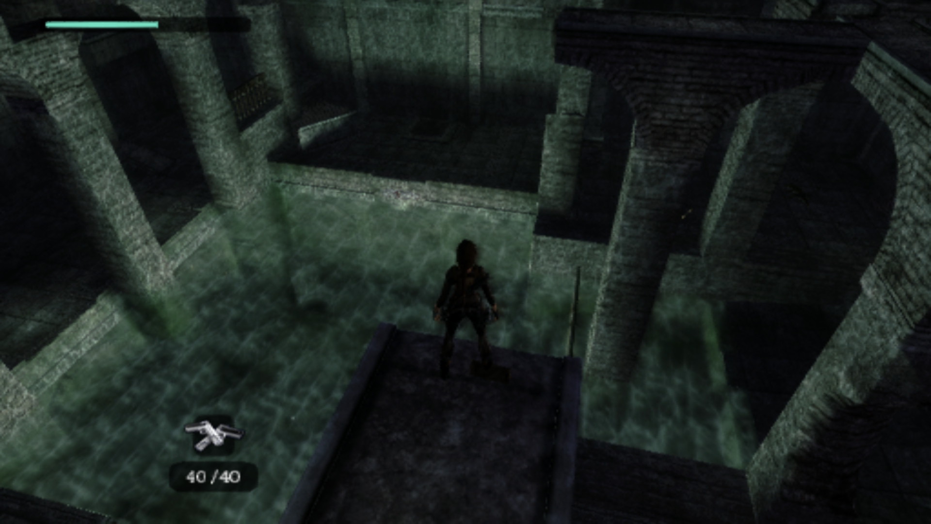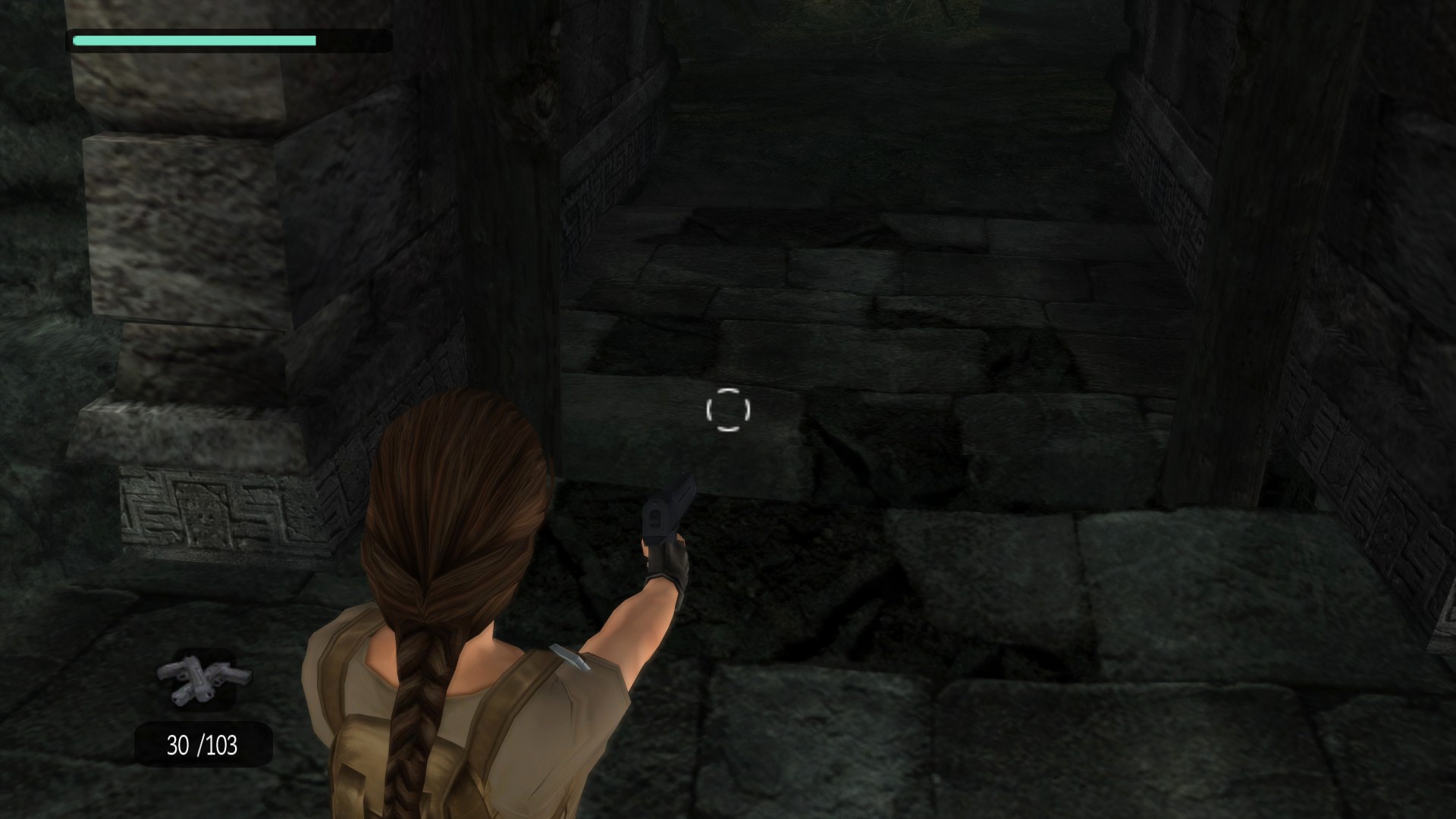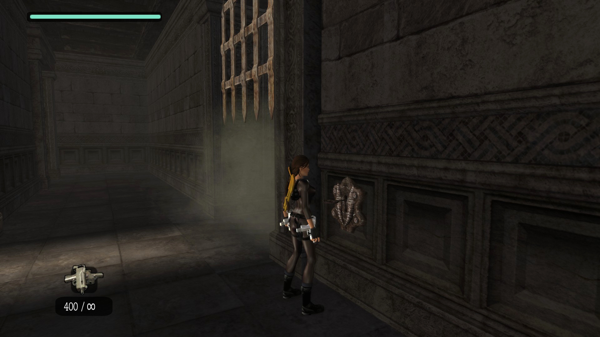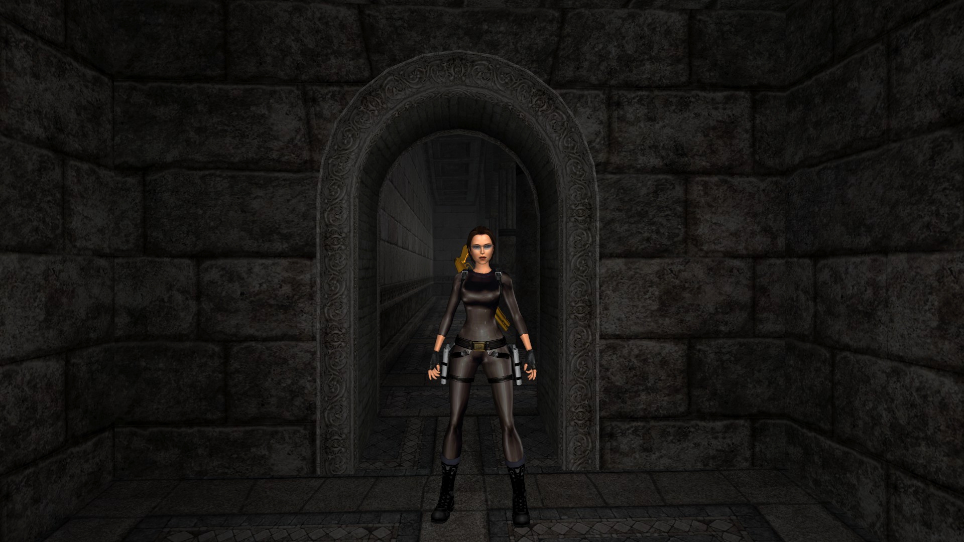 Итак, первым, куда я смог телепортироваться, оказалась тестовая комната, подобную которой можно найти в Tomb Raider: Legend. В этой комнате, на сей раз, есть кое-что интересное – вырезанное оружие. Всего на полу два оружия: дробовик и автомат. Напомню, что в числе оружий Лары только УЗИ были скорострельными.