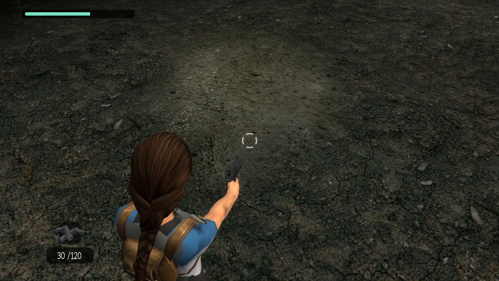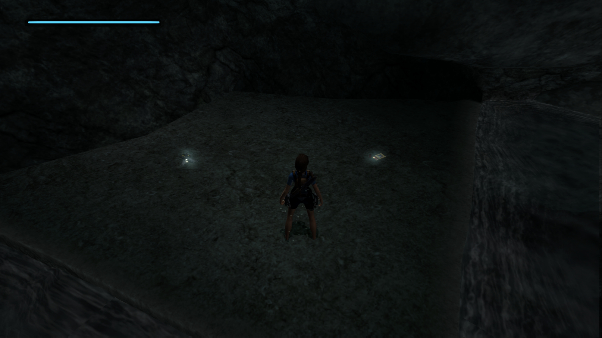 - Золотые патроны на одном из выступов, неизвестно от чего. При подборе из Лары выпадает маленькая аптечка, которую нельзя подобрать.