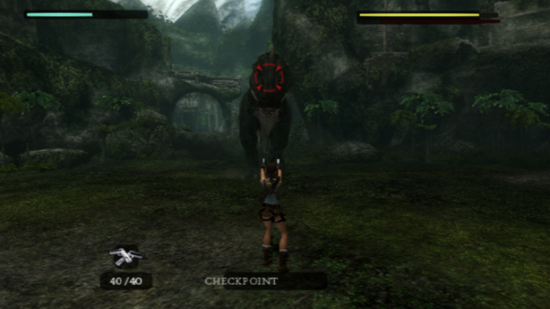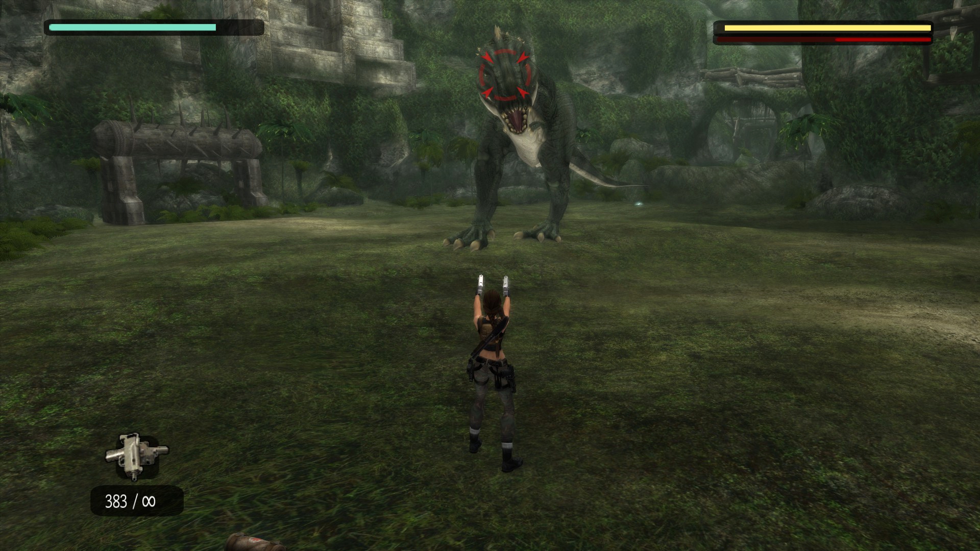 - Даже после смерти Тираннозавра Лара может целиться в него и стрелять.