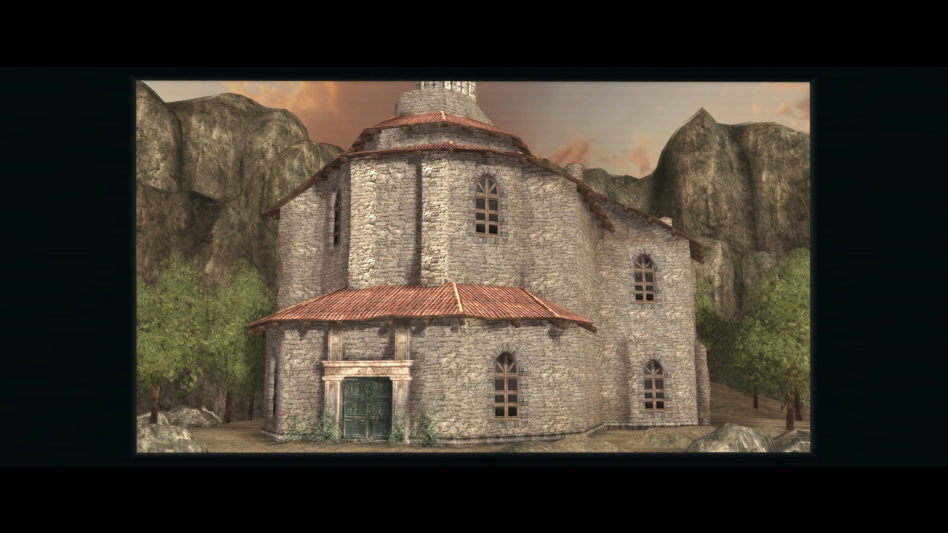 - Вид на монастырь святого Франциска имеет вид концепта. А приближенная копия отличается положением камеры.