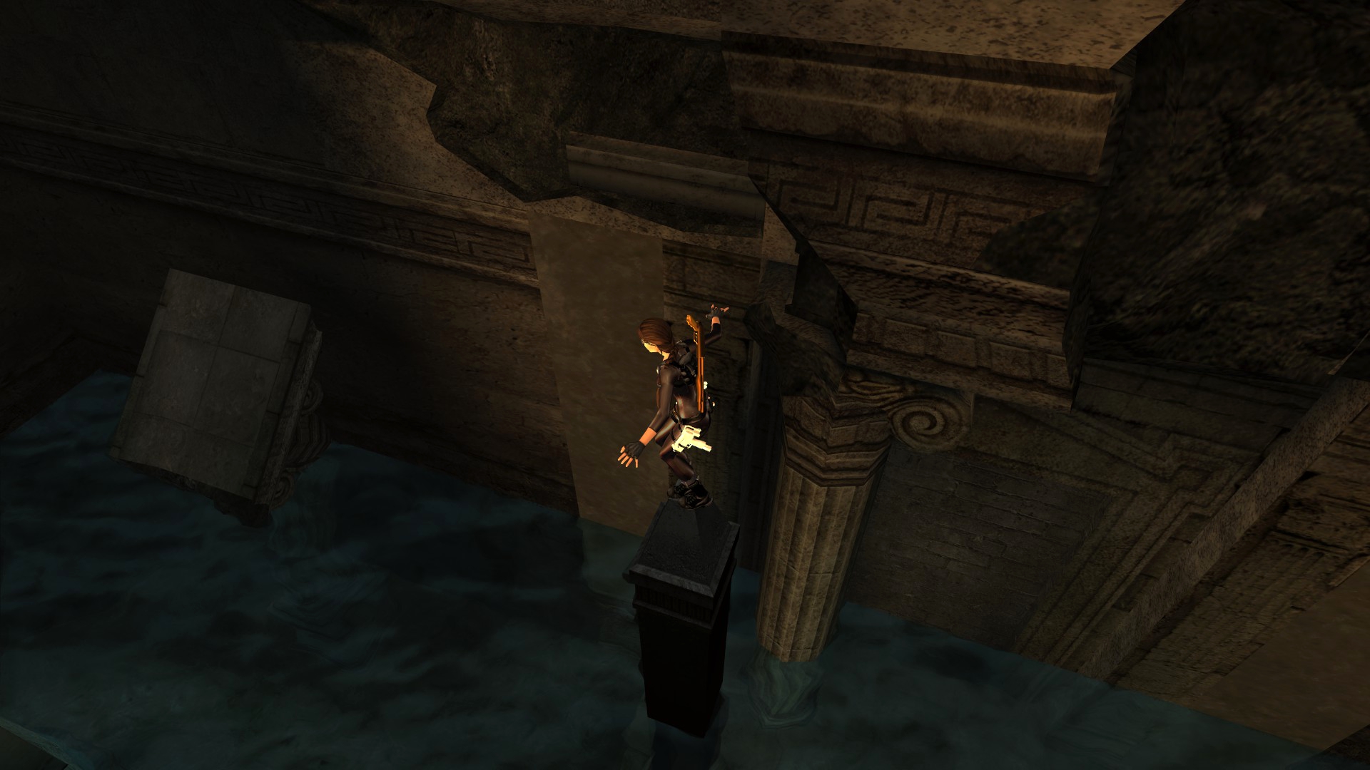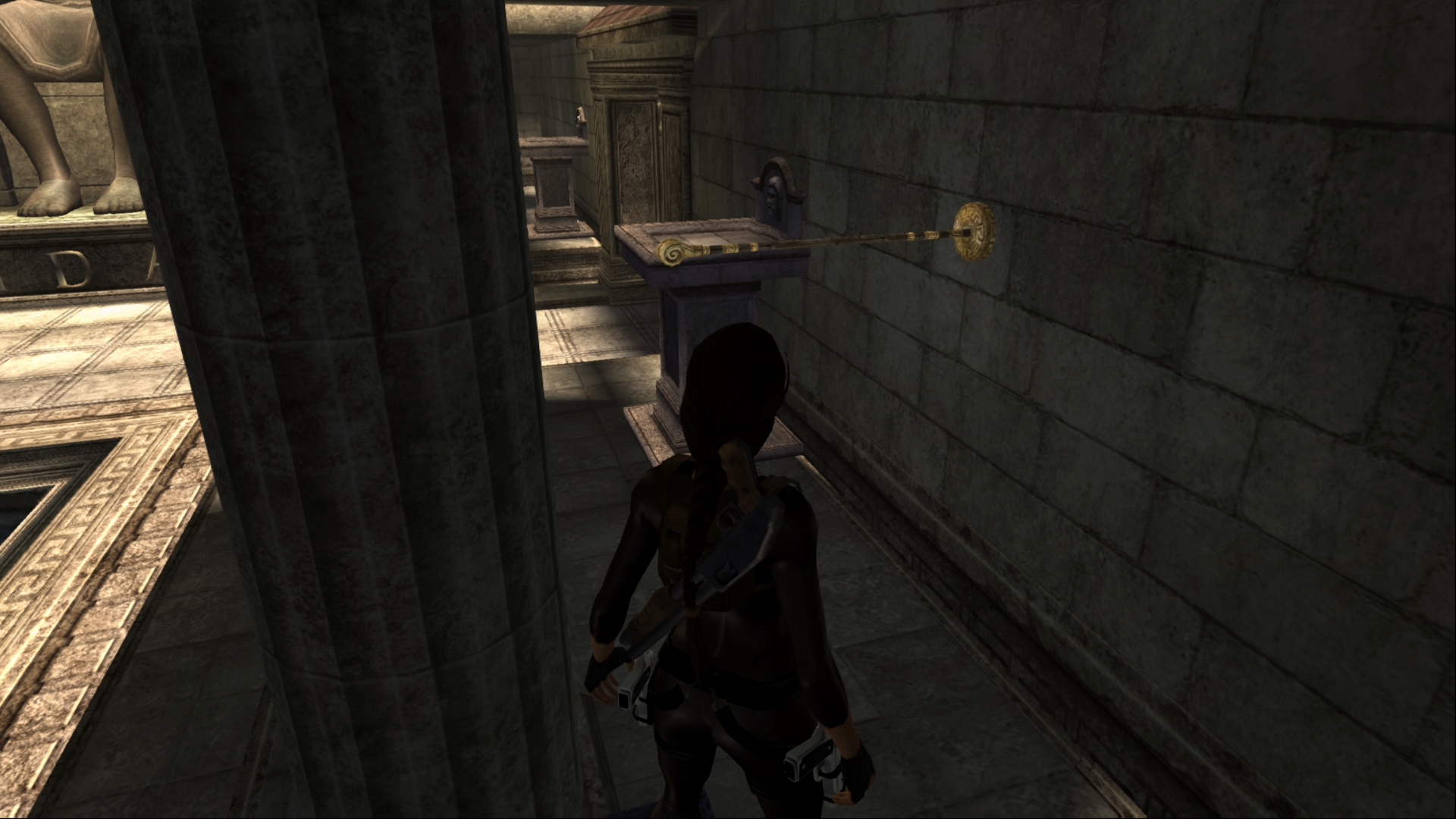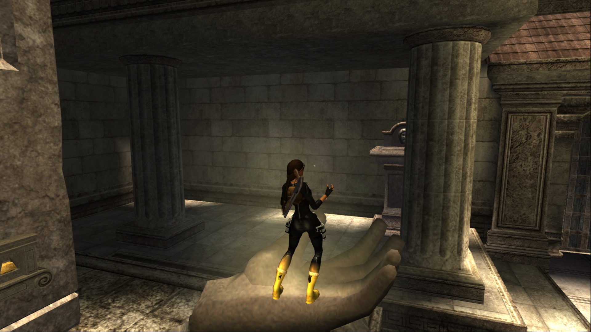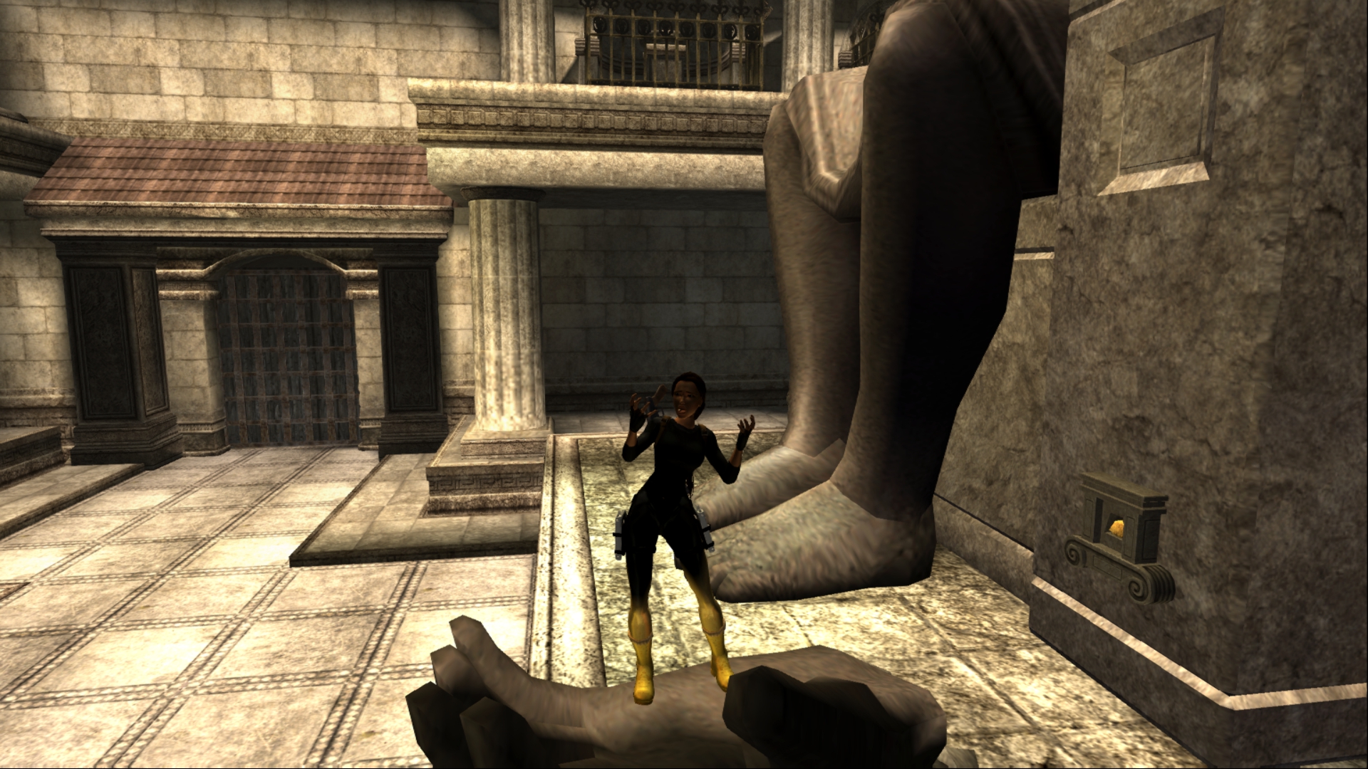 Вернёмся в Грецию. Досмотрим то, что от нас скрыла игра за непроходимым барьером... На самом деле, барьер присутствует и в финальной игре, только Лара подпрыгивает выше обычного. А отличий там мало, только нажимная плита, да и только.