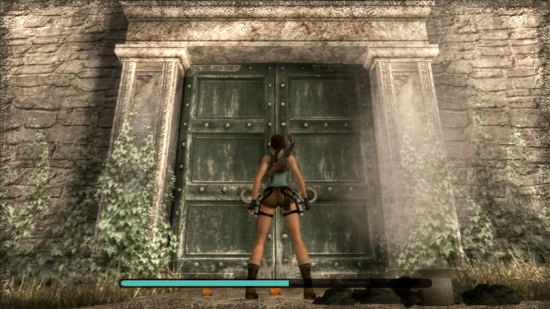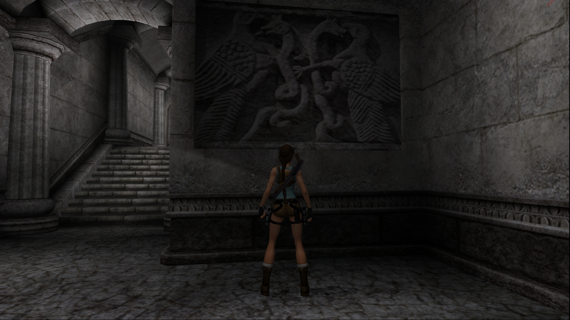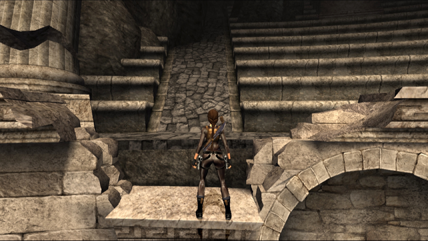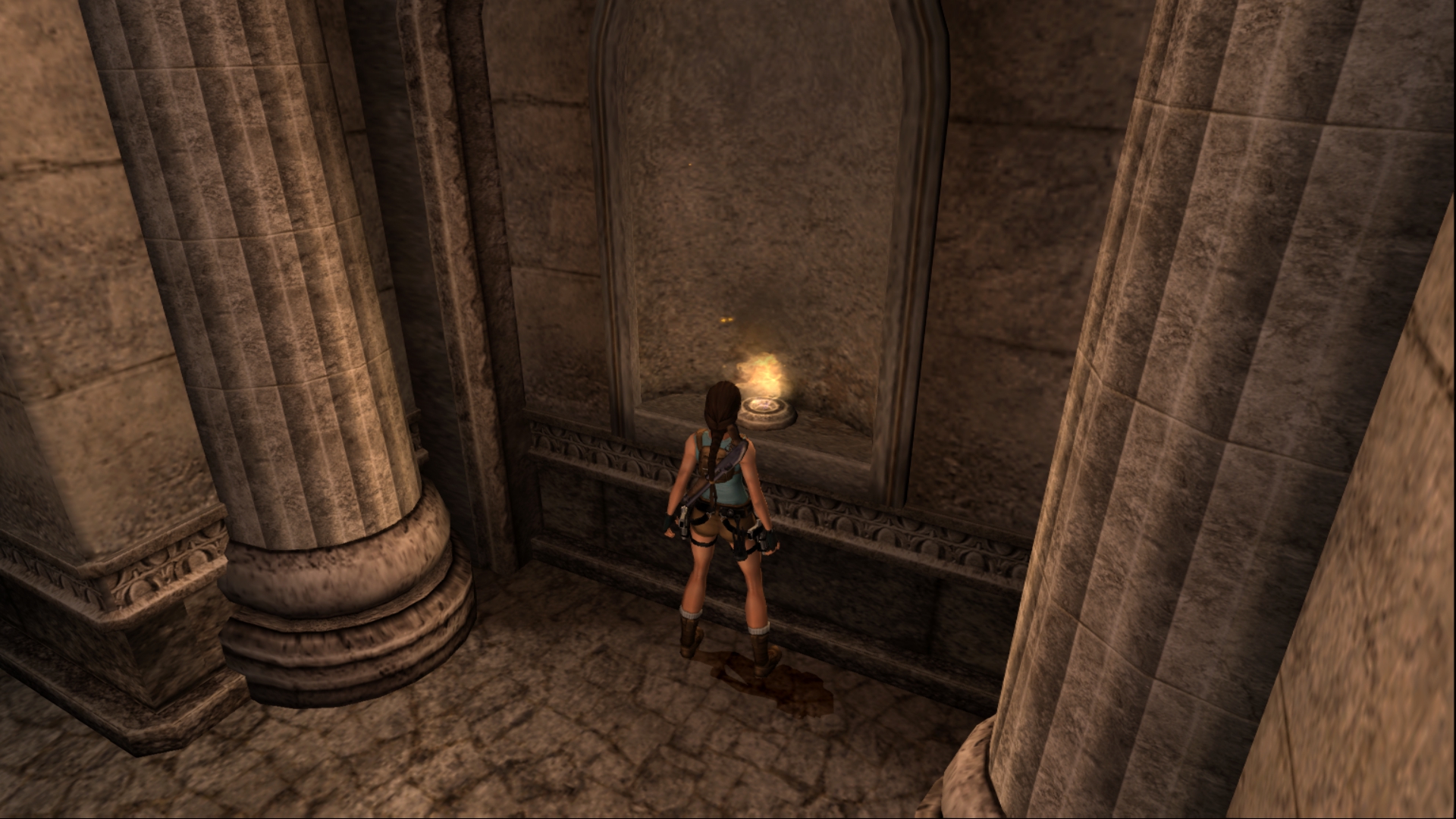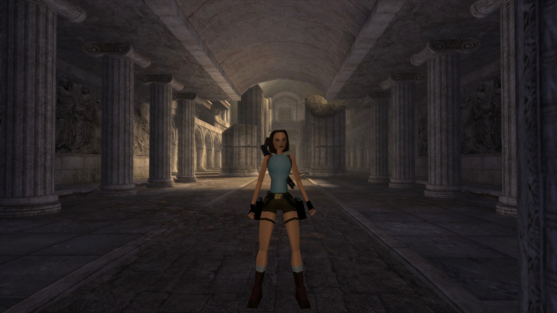 Вернёмся в Грецию. Досмотрим то, что от нас скрыла игра за непроходимым барьером... На самом деле, барьер присутствует и в финальной игре, только Лара подпрыгивает выше обычного. А отличий там мало, только нажимная плита, да и только.