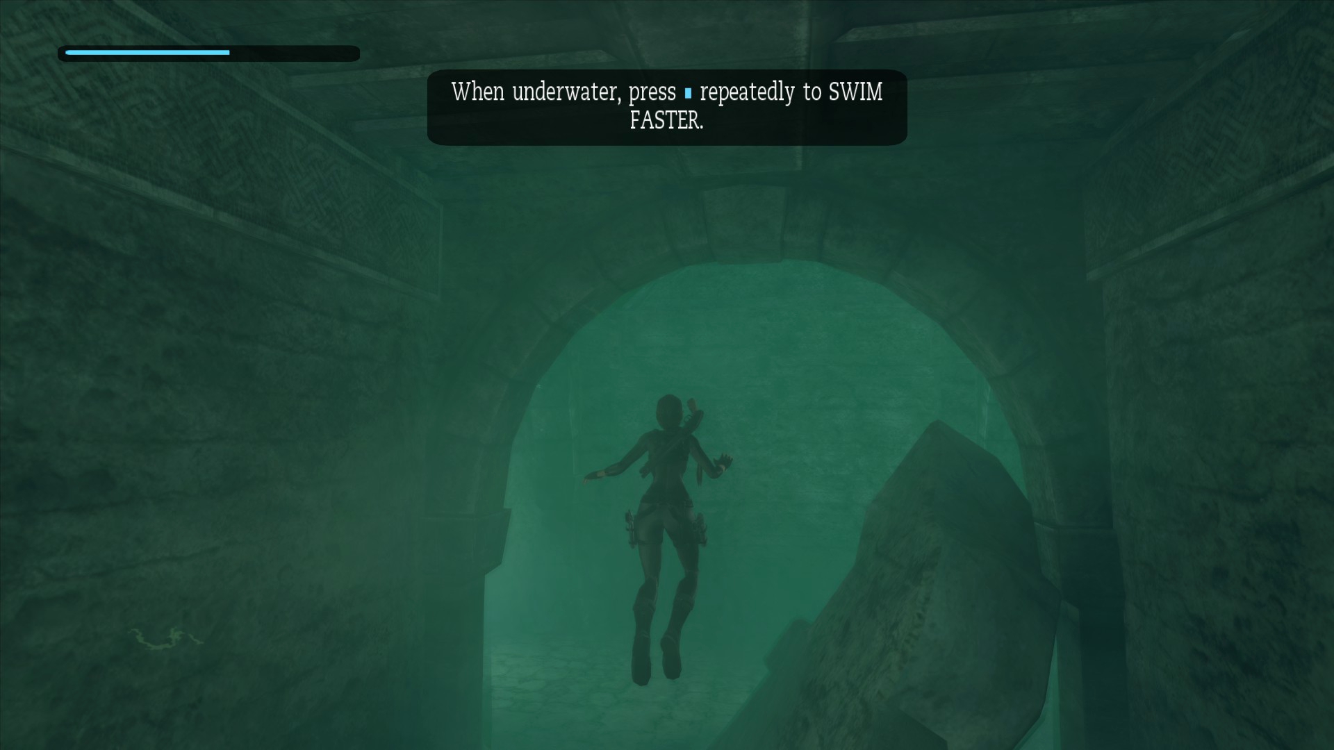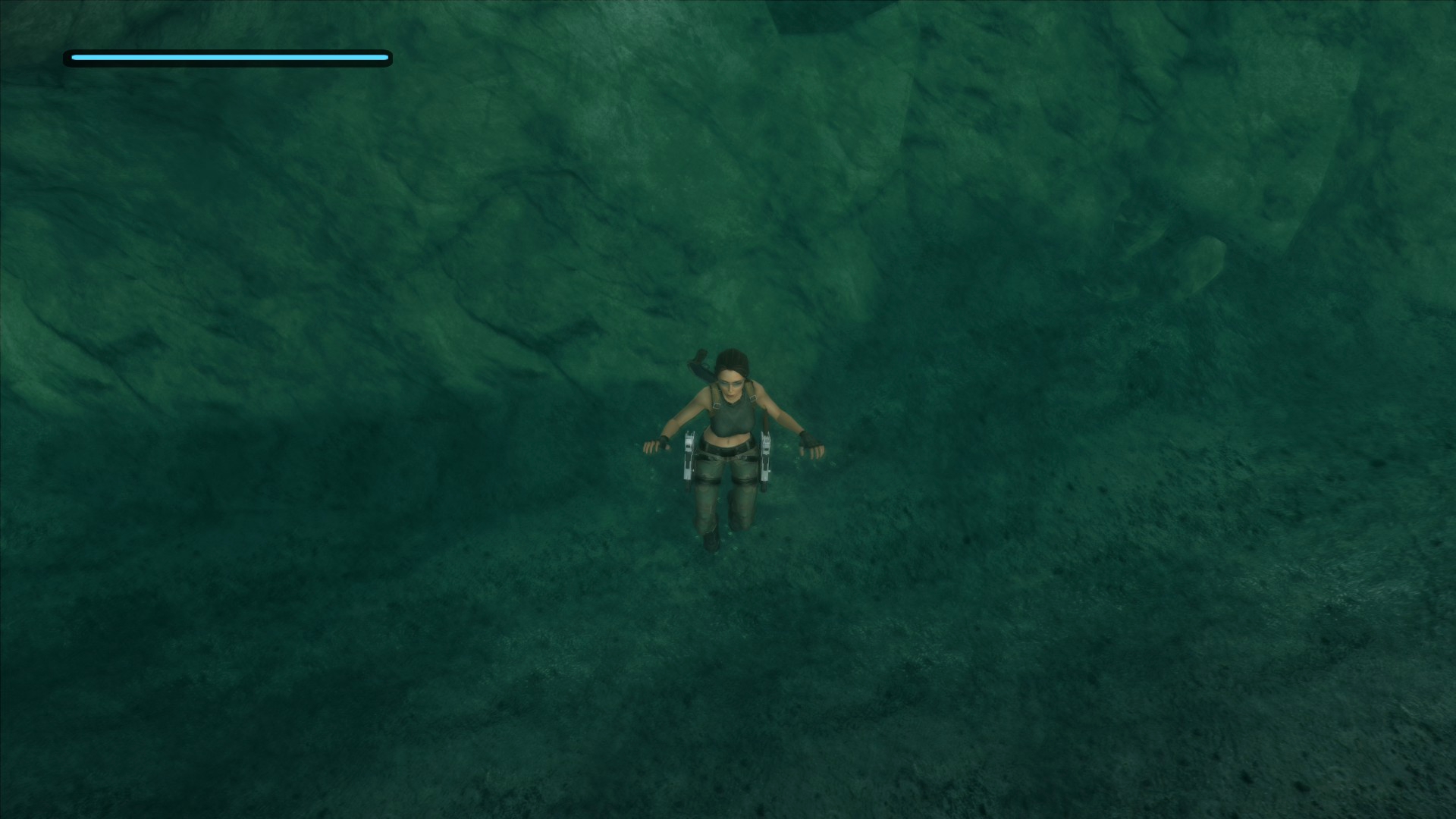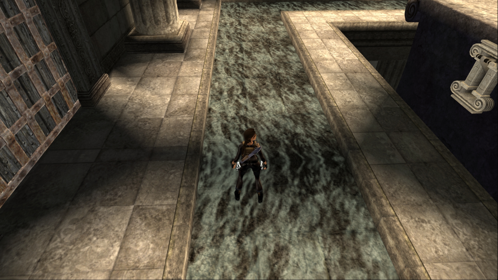 Однако, даже эта мелочь не сравнится с тем, что творится с водой... В прототипе есть как минимум две локации, где эффект воды работает на одном волоске буквально. Любое движение вне этого "волоска" приводит к тому, что Лара начинает бегать по дну. Подобные баги я заметил в Египте и в великой пирамиде, оба случая делают уровни непроходимыми.