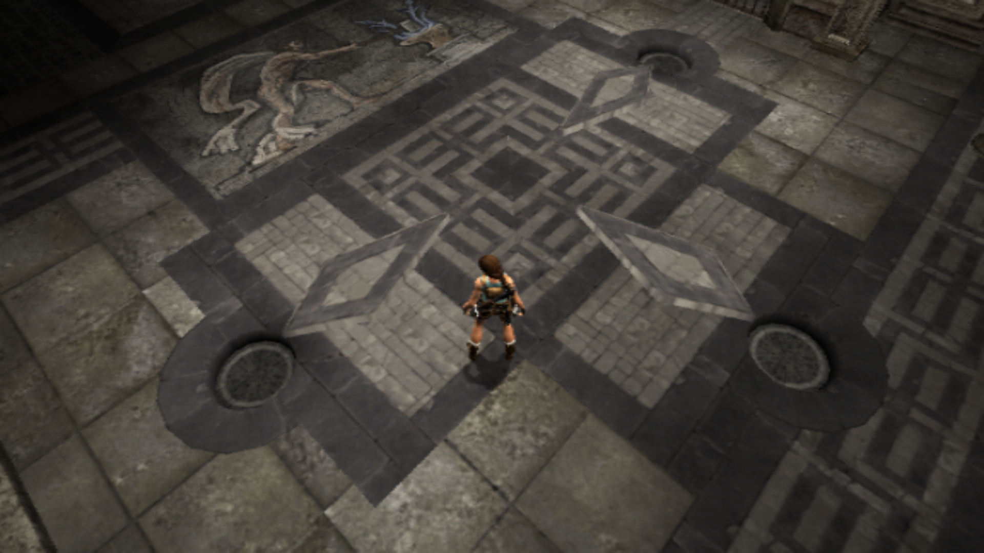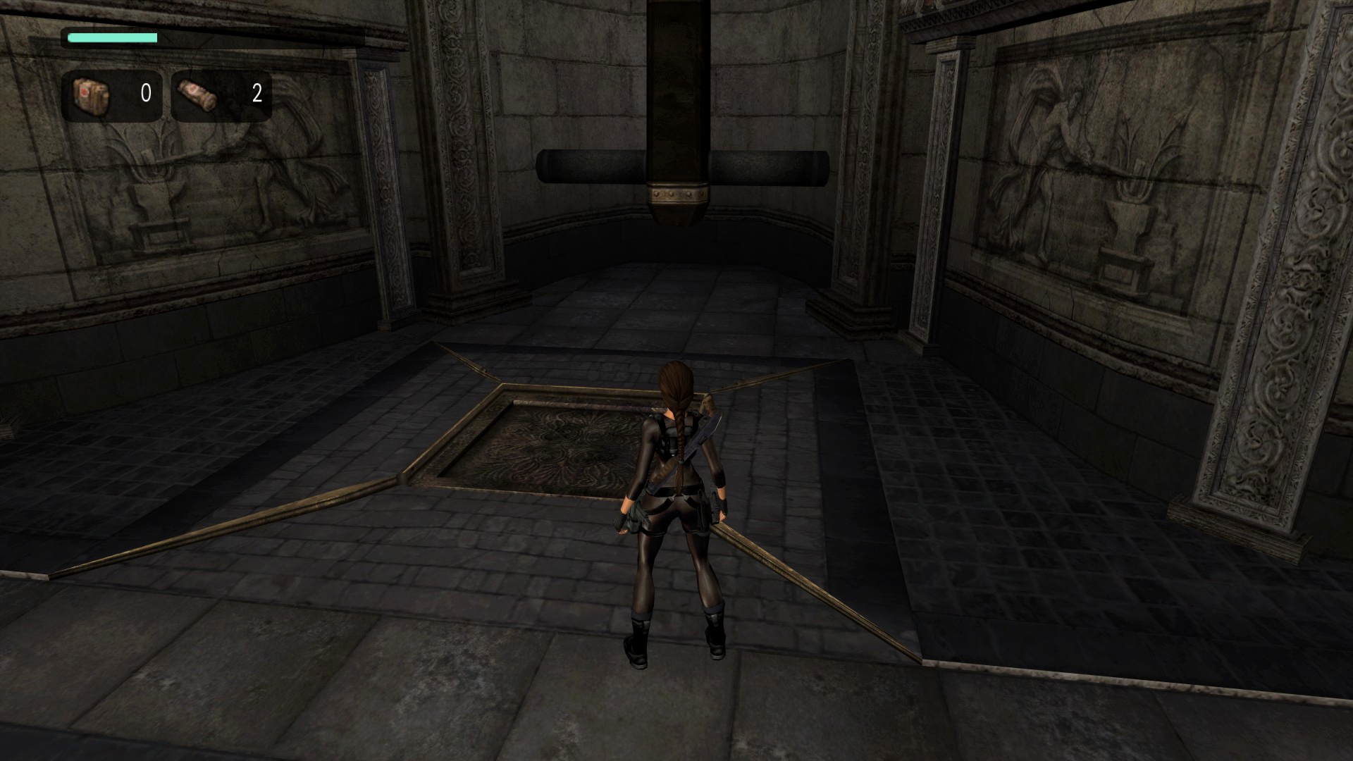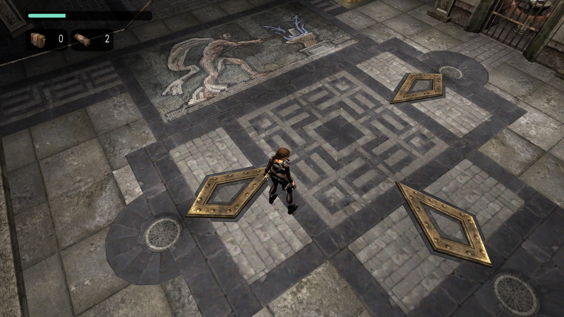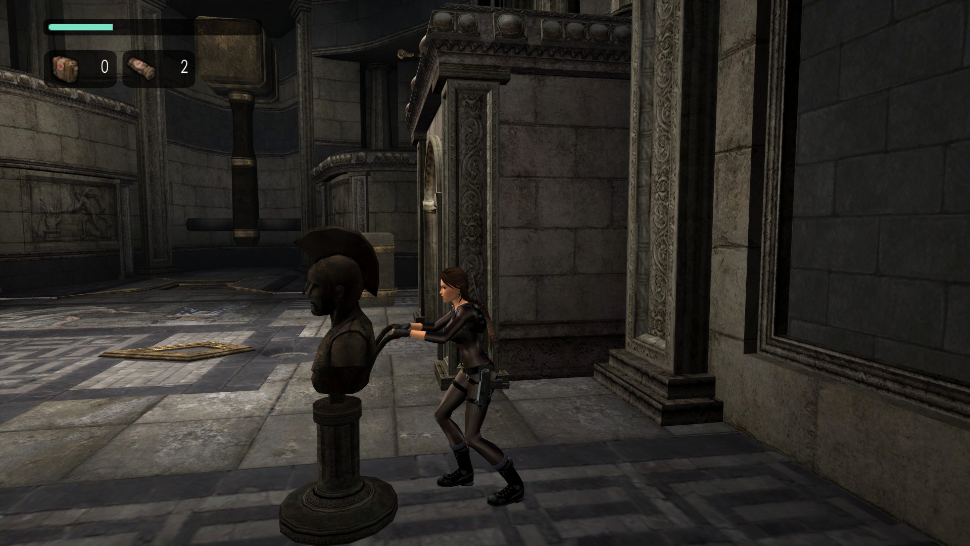 - После нажатий всех нажимных плит в испытании Гефеста Лара просто убегает вперёд сама. В этом же испытании изменена гравировка на полу, убраны ограничители для бетонных блоков и бюсты не имеют рукоятей, посему их можно хватать с любой стороны.