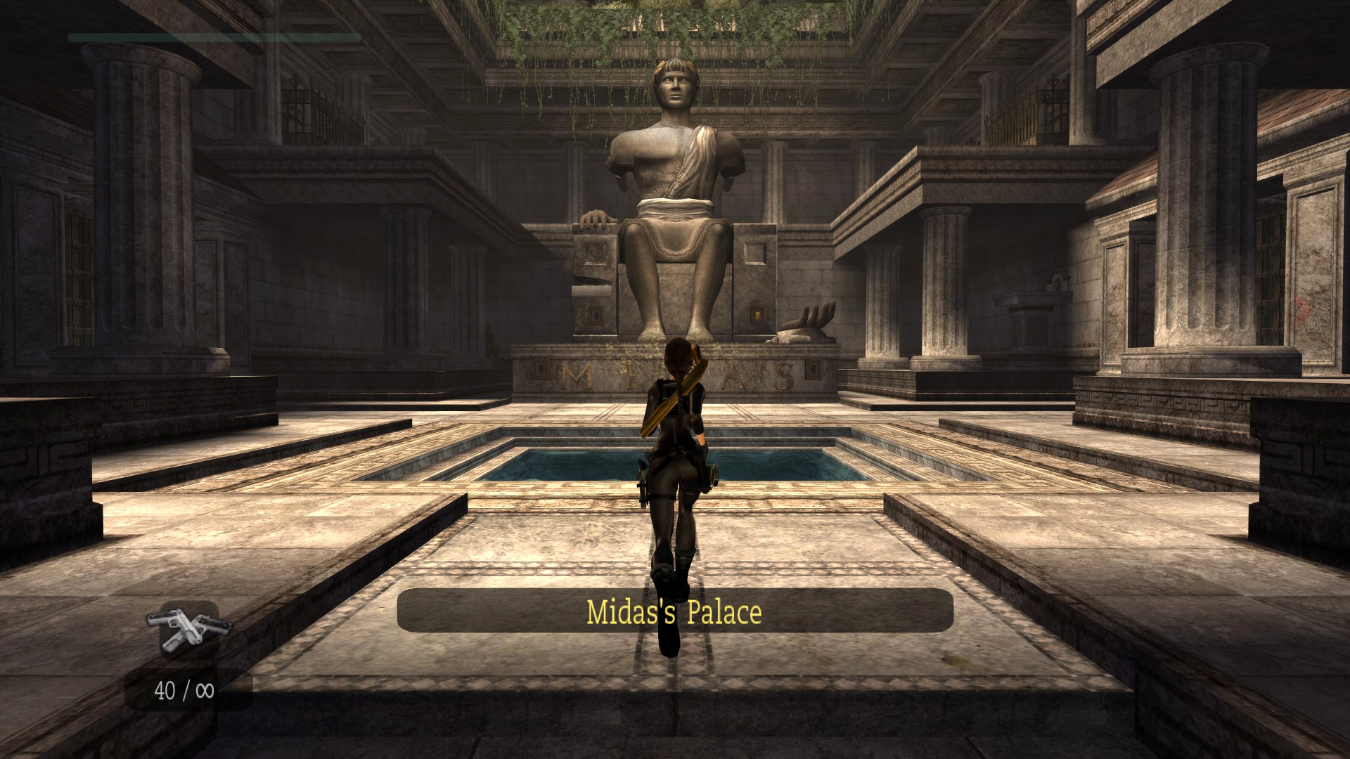 На этой локации первым делом я запрыгнул на руку Мидаса. Превращение в золото тут выглядит иначе, а также, если надеть костюм кошки, то во время превращения он станет чисто чёрным... Как это есть в ремастере и в PSP-версии! Правда, есть ещё одна важная деталь: костюм может стать серебристым, но только в галерее.