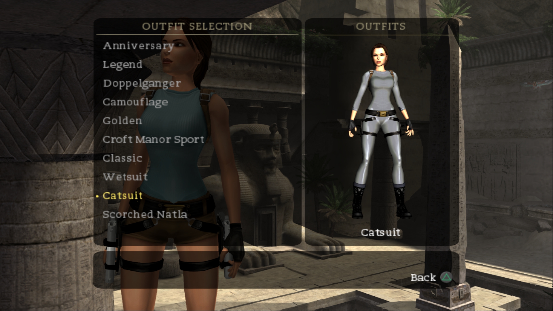 На этом можно было б и закончить, но когда я случайно застрял за картой и хаотично стал нажимать на кнопки, выяснилось, что в прототипе есть меню отладки! Это дало мне возможность рассмотреть все костюмы, что доступны в прототипе, а также продолжить игру путём перепрыгивания через локации. Как выяснилось, Греция на самом деле финальный этап, только она проходима полностью. Египет и великая пирамида, увы, в прототипе просто-напросто отсутствуют. Тем не менее, давайте рассмотрим на отличия то, что было ранее недоступно.