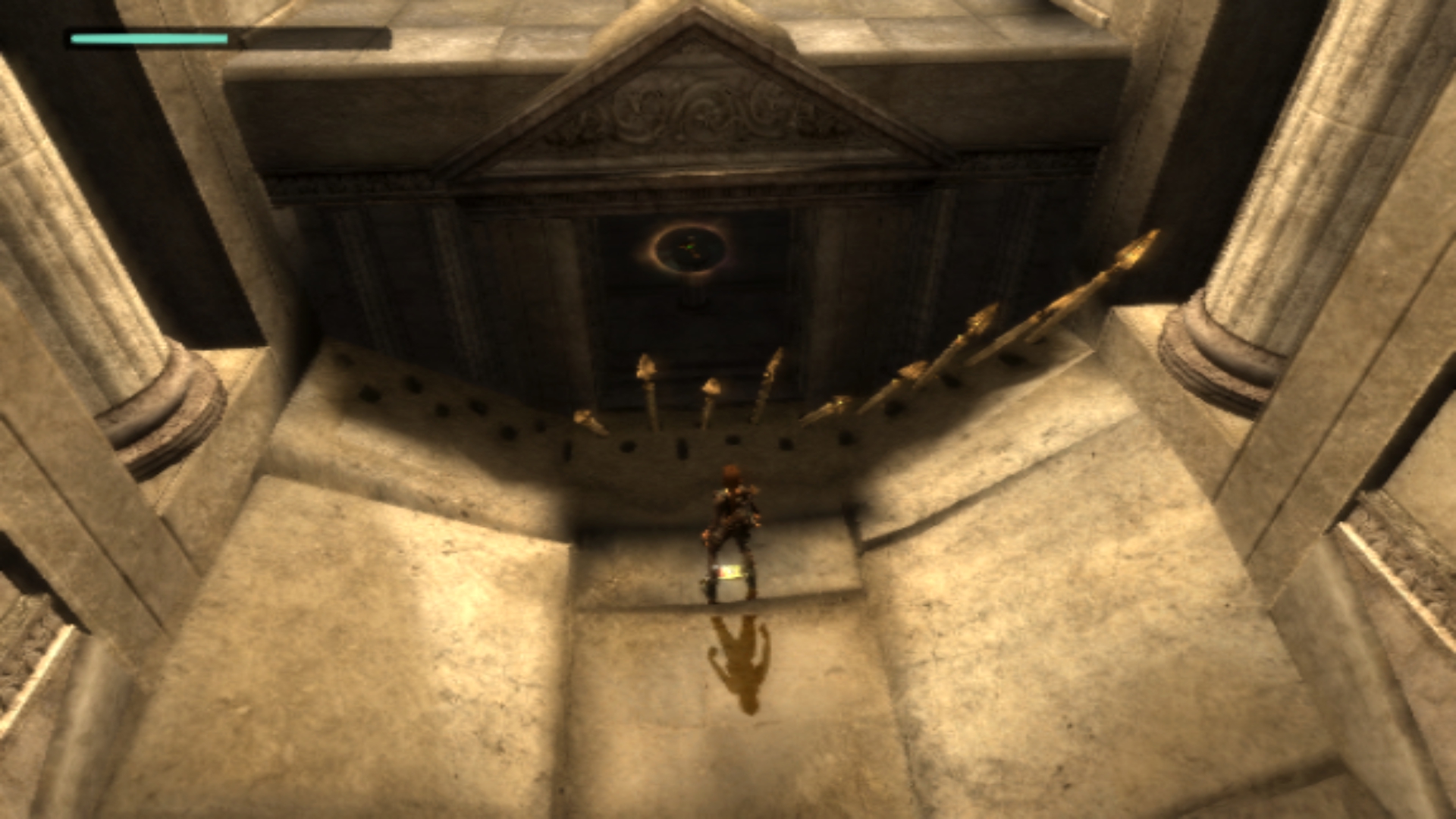 Второй баг меня поджидал в соседней комнате – испытание Атласа. В этом испытании, после того, как опустили копья – нужно убежать от глобуса. Убежать получается всегда, а вот копья опустились не все, забрать ключ можно, только зачем? Двери Посейдона навеки запечатаны.