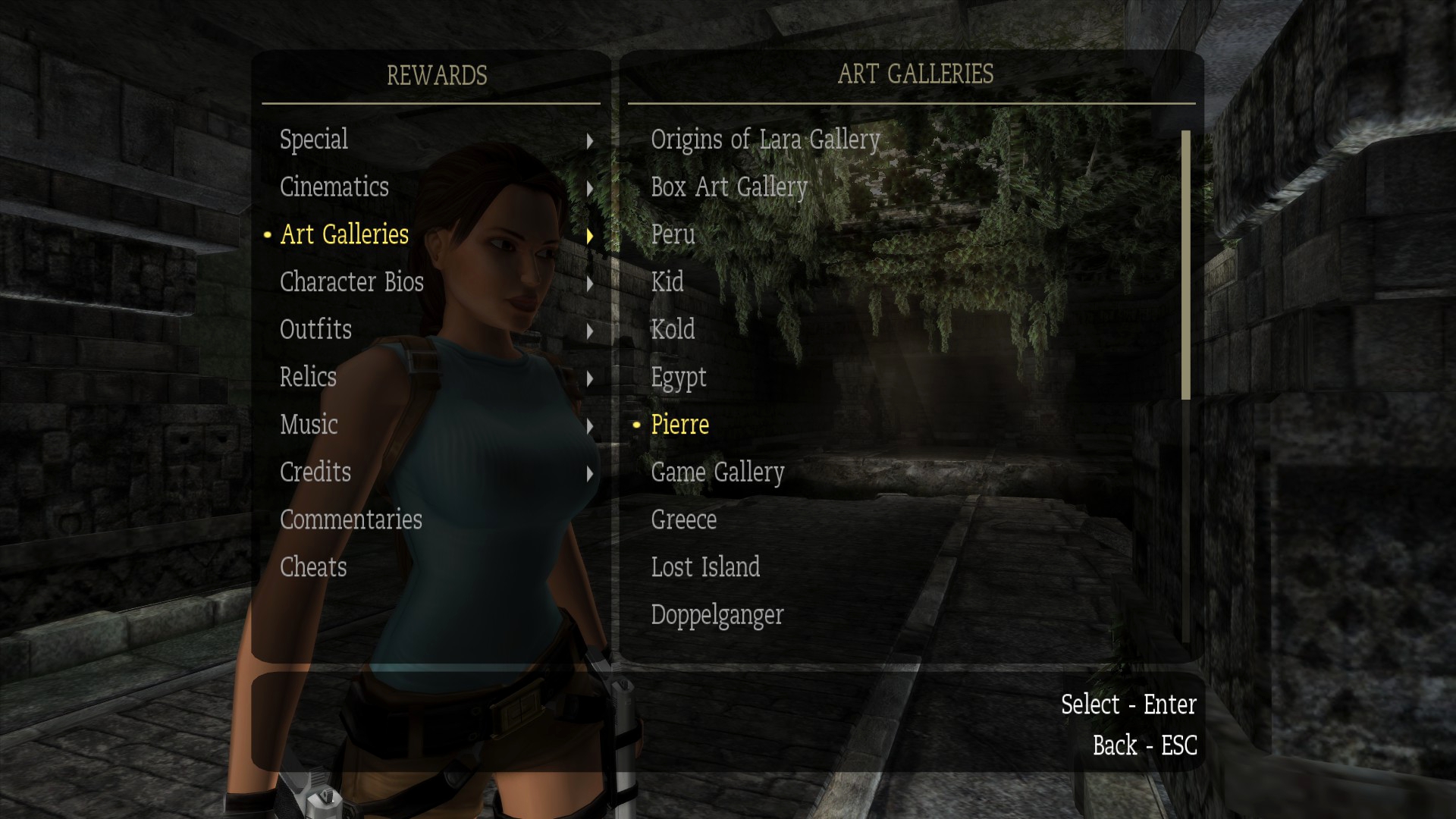 В галерее артов, вместо зарисовок Лары – логотипы Eidos и Crystal Dynamics. А также присутствует пункт с галереей Ричарда Крофта, отца Лары, но, увы, все картинки в прототипе – плейсхолдеры.