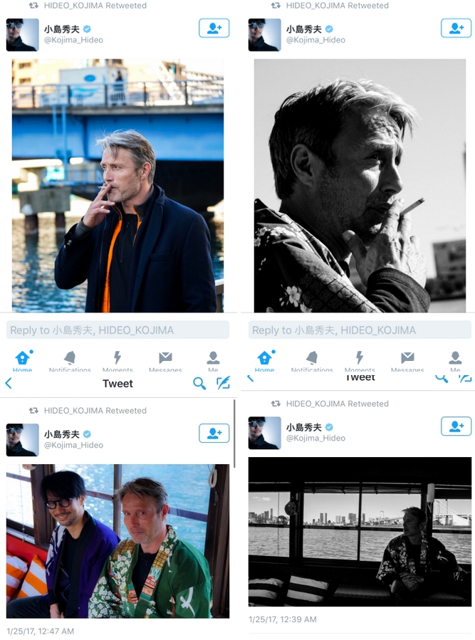 В 2016 году радостный Кодзима сообщил о том, что работает вместе с Мадсом над одним проектом. Также, судя по твиттеру Хидео, время они проводят просто замечательно. Помимо съёмок для будущей "Death Stranding", они празднуют дни рождения и ходят по барам. Фанаты ликуют. Кодзима тоже. Стул, на котором сидел Мадс, когда гостил в его студии, он назвал "Стул Мадса". Мне вообще кажется, что где-то там есть целая комната, посвящённая этому актёру. Ведь Кодзима купил все его фильмы, книги по фильмам и даже фигурки, а Твиттер ломится от фотографий Мадса.
