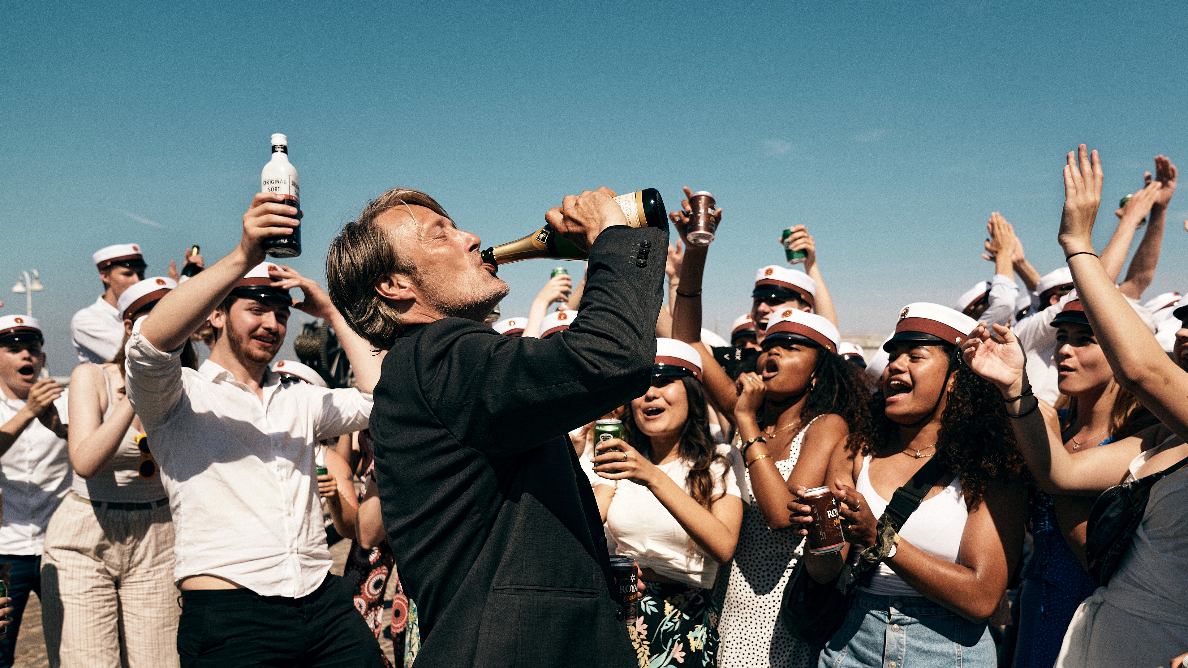 Следующий фильм я советую посмотреть всем. Это комедия с элементами драмы под названием "Ещё по одной", где Мадс, точнее его персонаж по имени Мартин, вместе со своими друзьями решает проверить одну теорию. А именно: выпивать каждый день и смотреть, что из этого получится. Честно, синопсис фильма меня повеселил очень. Потому что у меня под окнами часто собираются такие же теоретики-практиканты.