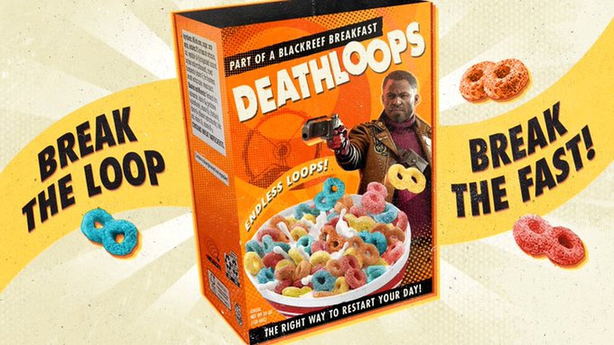 Разработчики анонсировали хлопья Deathloops со слоганом, обыгрывающим основную задачу игры — вырваться из временной петли. Скоро в продаже!