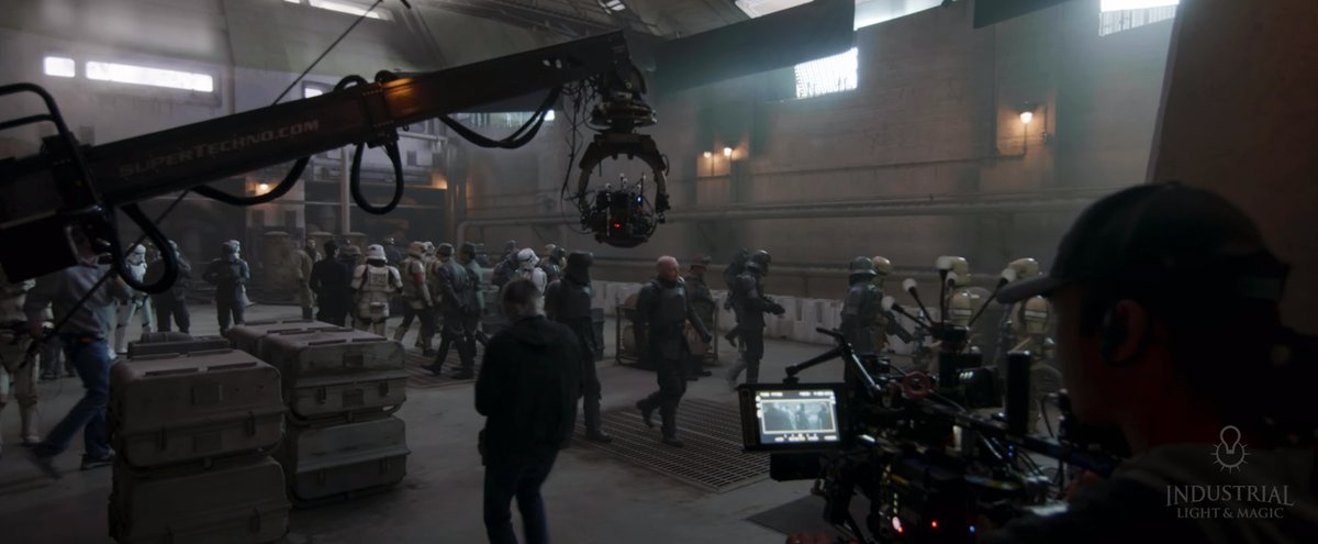 Например, прогулка Дина Джарина по имперской базе или порту сняты под куполом. Это комбинация из небольшого количества реальных декораций и задников, рендерящихся в реальном времени в зависимости от положения камеры.