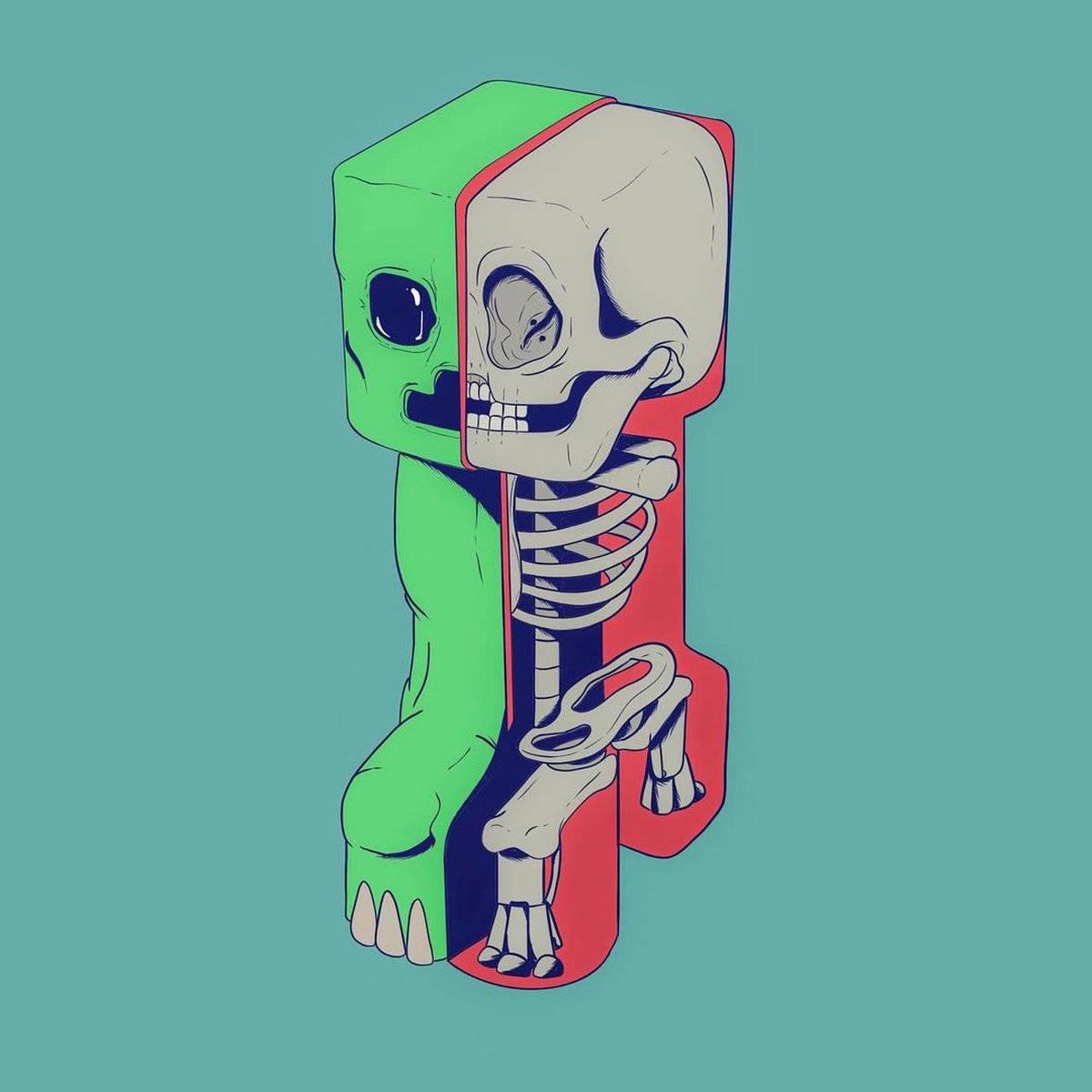 В качестве референсов, рассказывает художник, он использовал реальные человеческие черепа. Благодаря этому у существ из Minecraft в глазницах появились отверстия, напоминающие знаки деления; похожие отверстия есть и у людей.