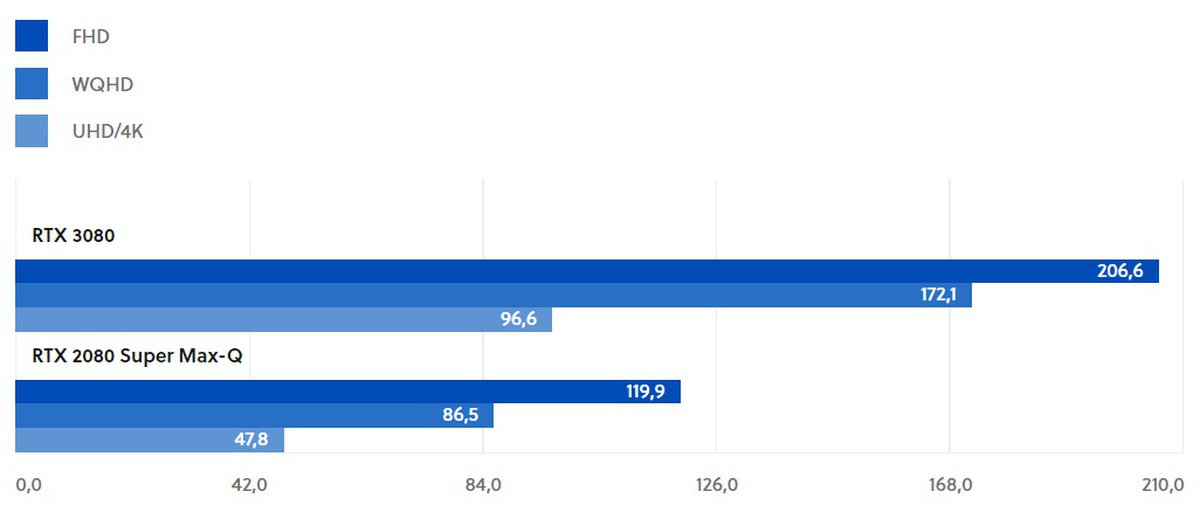 Редакторы GameStar, получившие доступ к альфе, проверили игру на двух системах: с топовой видеокартой GeForce RTX 3080 и с мобильной GeForce RTX 2080 Super Max-Q, по производительности близкой к десктопной GeForce GTX 1070 Ti.