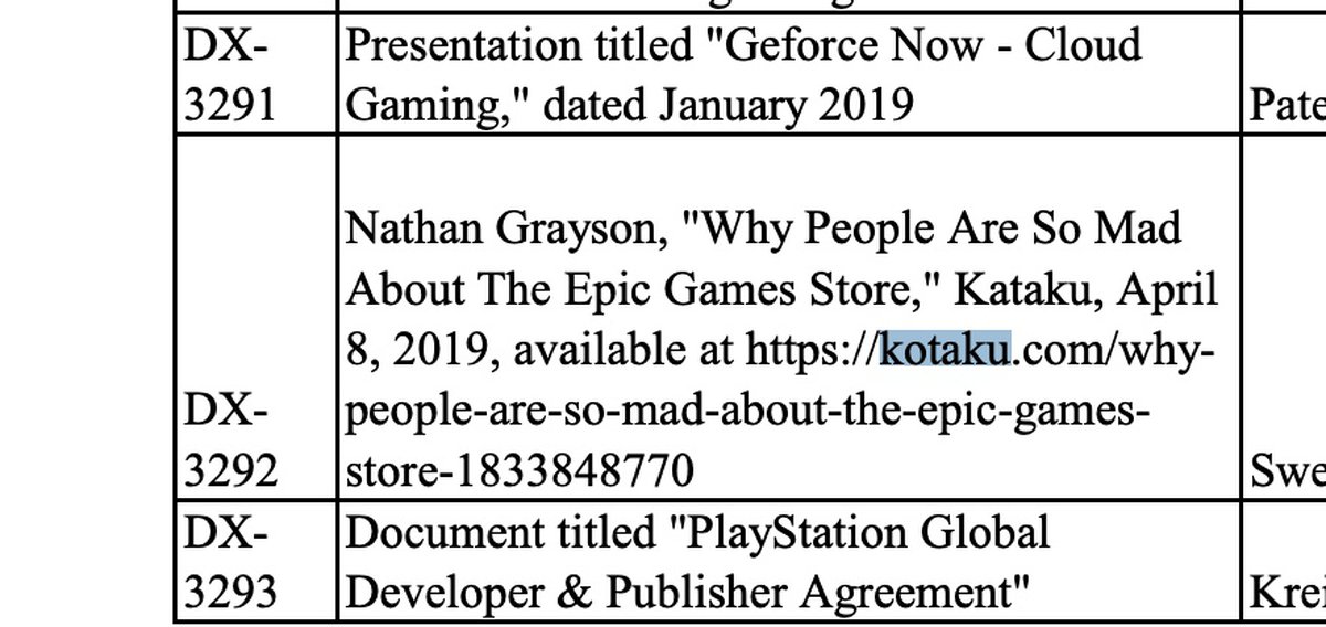 Еще одна необычная улика — статья Kotaku (ошибочно названного Kataku), посвященная недовольству игроков магазином Epic Games. Из забавного: статью нашел в списке улик ее автор, журналист Нейтан Грейсон.