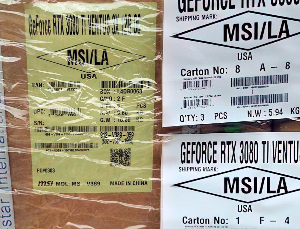 Nvidia и ее партнеры наконец запустили в производство видеокарту GeForce RTX 3080 Ti. Фотографии запакованных и готовых к перевозке ящиков с видеокартами, произведенными MSI, удалось получить Lok LOK.