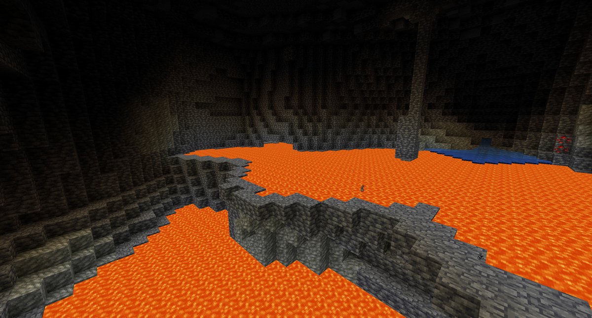 Такие лавовые горизонты могут появляться ниже нулевой отметки. Заодно разработчики добавили генерацию под землей больших рудных жил; они появляются редко и обычно имеют змеевидную форму.