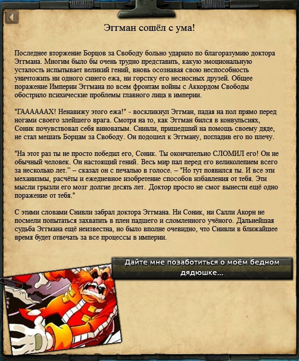 Что мешает повторить это с Эггманом! Посмотрите сами, дедуля там уже совсем поехал кукухой, сливает свою вторую войну. Может отправить его в дом престарелых?