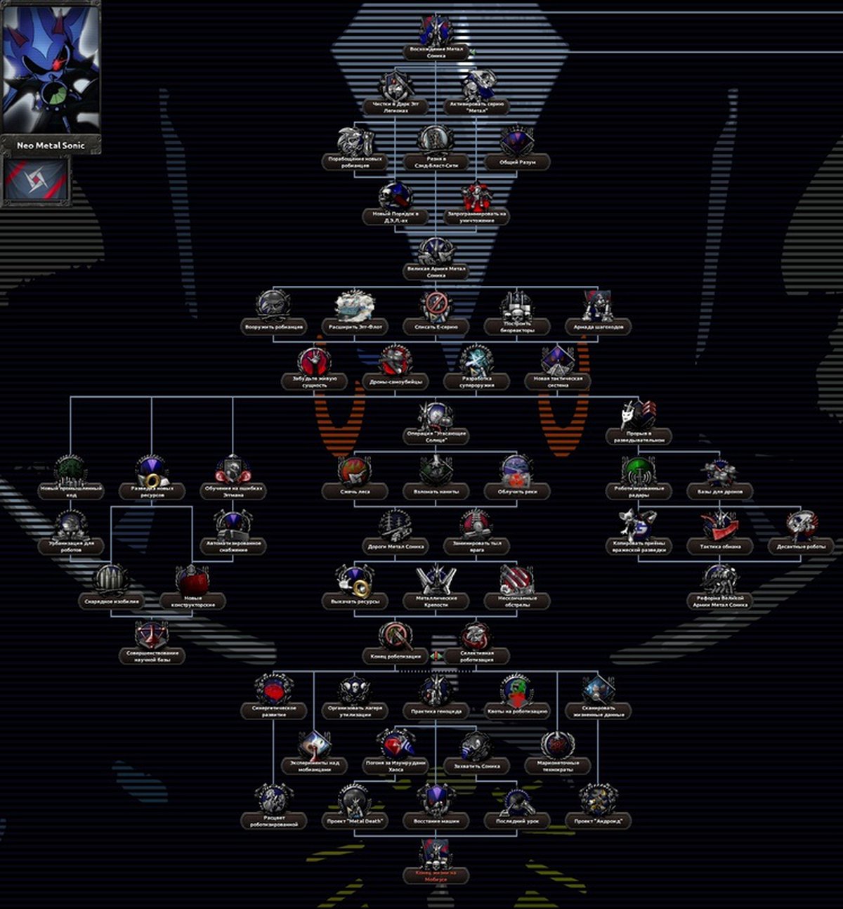 Есть ещё один персонаж, который может свергнуть Эггмана. Помните, Роботник делал какой-то ИИ. Искусственный интеллект может захватить контроль над Метал Соником. Тот станет больше, чем машиной для уничтожения ежа. Он выработает свою философскую систему, считающую органические формы разума отжившими своё. Таким образом, живые существа не должны быть превращены в роботов. Они все должны умереть…