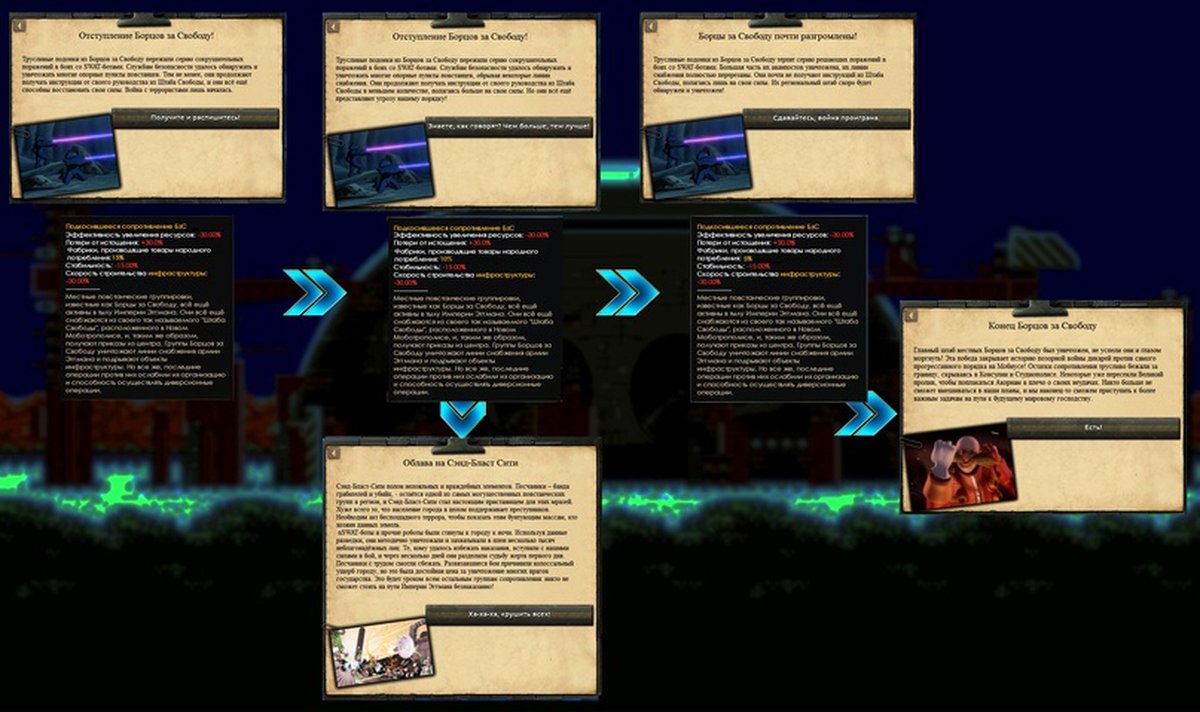 За активностью повстанцев нужно следить. Каждая их атака будет наносить определенный урон случайному региону Империи. Хорошая новость в том, что чем слабее Борцы за Свободу, тем меньше урона наносит каждая диверсия. Но с каждой диверсией они становятся сильней.