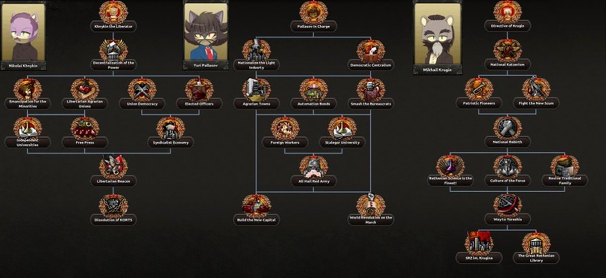 Подобные варианты есть и для других стран, например, Рутении. Социализм тоже можно строить по-разному. И персонажи там не менее проработанные.