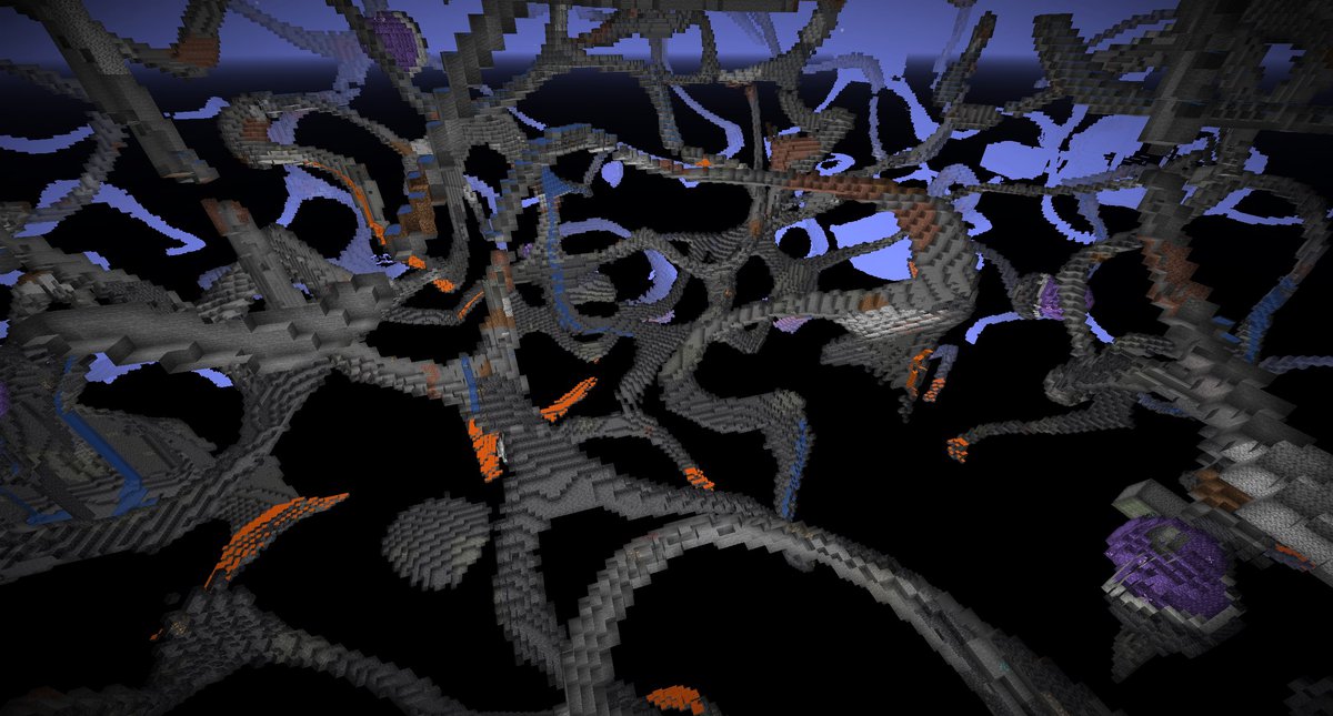 Если отключить все остальные блоки, то пещеры выглядят страшновато.