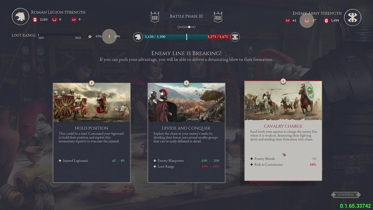 Сражения армий в Expeditions Rome выглядят как мини-игры. Игрок не командует войсками лично, а отдает простые команды: например, удерживать позиции или отправить в атаку кавалерию. У действий есть определенные эффекты, которые могут воздействовать на обе армии.