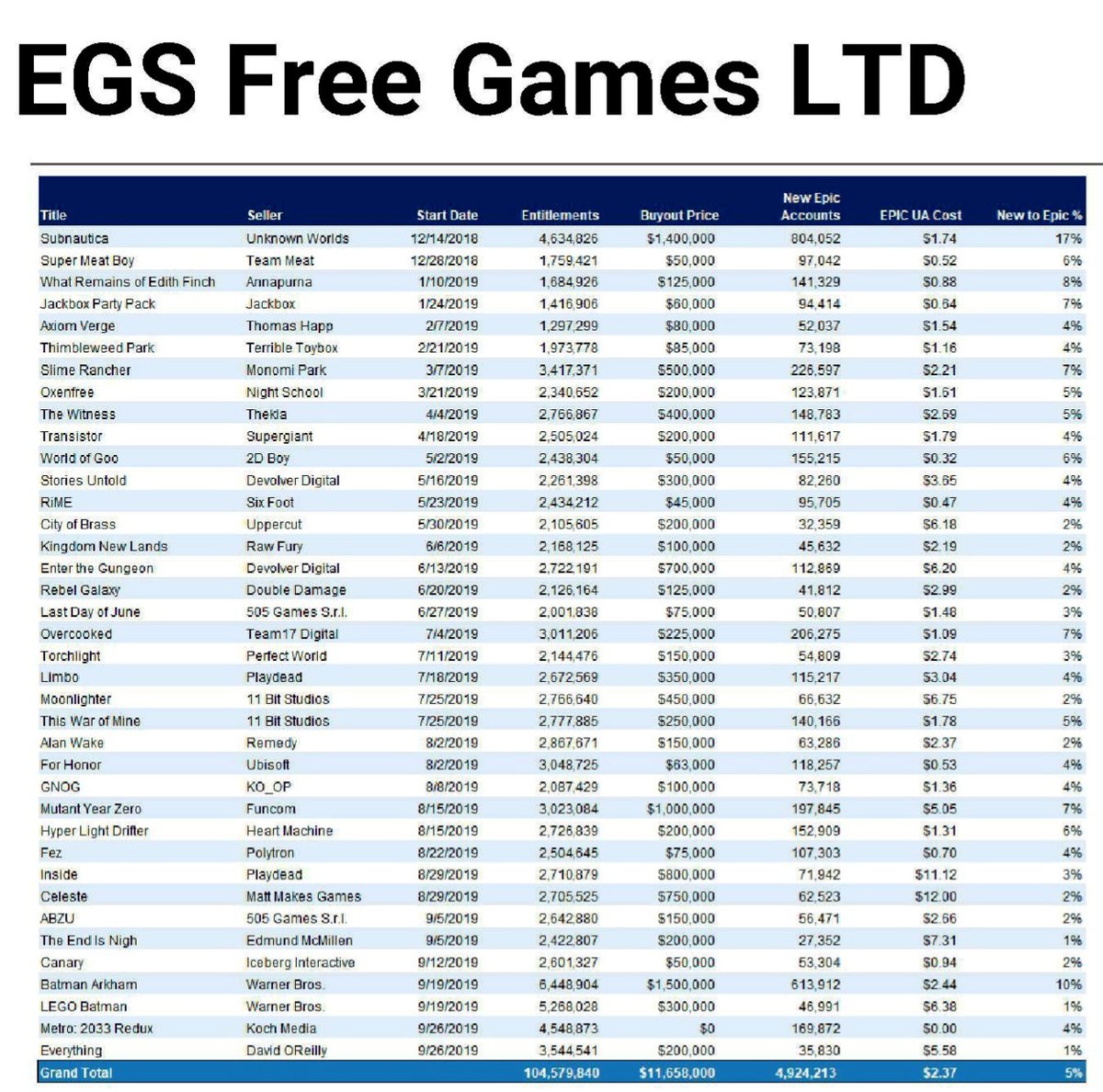 В общей сложности к октябрю 2019 года на бесплатные раздачи игр в Epic Games Store потратили $11.6 миллиона. К сожалению, цена контракта с Rockstar в список не попала.