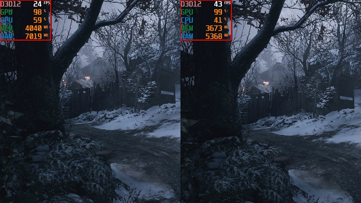 Демо-версия Resident Evil Village запускалась в разрешении 1080p при максимальных настройках — по понятным причинам не включалась только трассировка лучей. Производительность оказалась близка к заявленной.