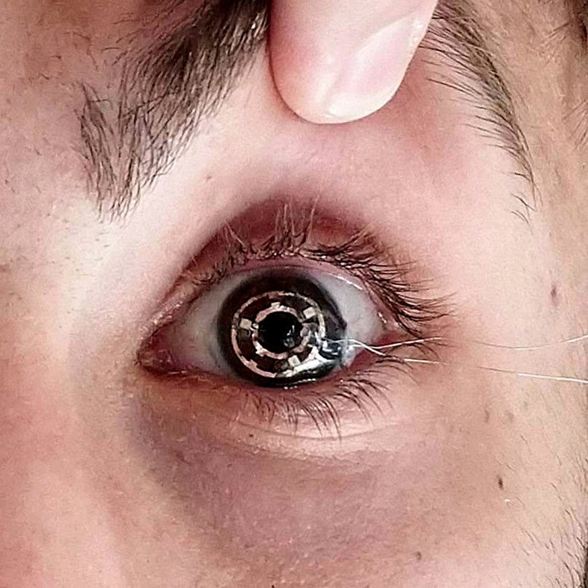Плату Кристофер снова закрепил между двумя контактными линзами. На этот раз система была тоньше и должна была не так сильно мешать моргать.