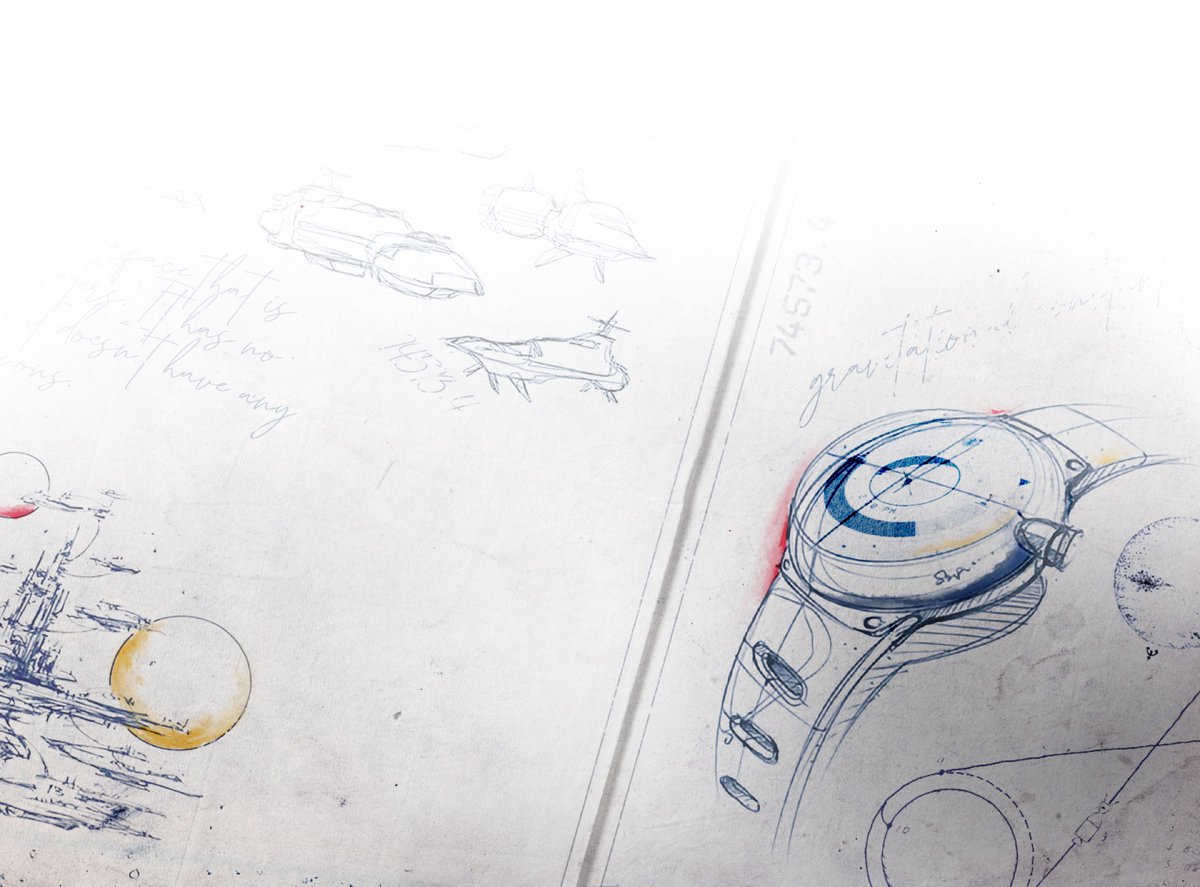 Арт частично прозрачен, это png-файл. Больше всего он напоминает страницу из блокнота: с набросками кораблей, планет и чем-то вроде технологичных часов.