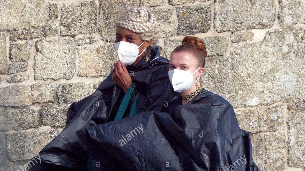 Хотя во время съемок актеры, играющие в сериале «Дом Дракона», обходятся без масок, между дублями или на пути к съемочной площадке их все-таки приходится надевать. Средневековые костюмы по соседству с медицинскими масками выглядят довольно комично.
