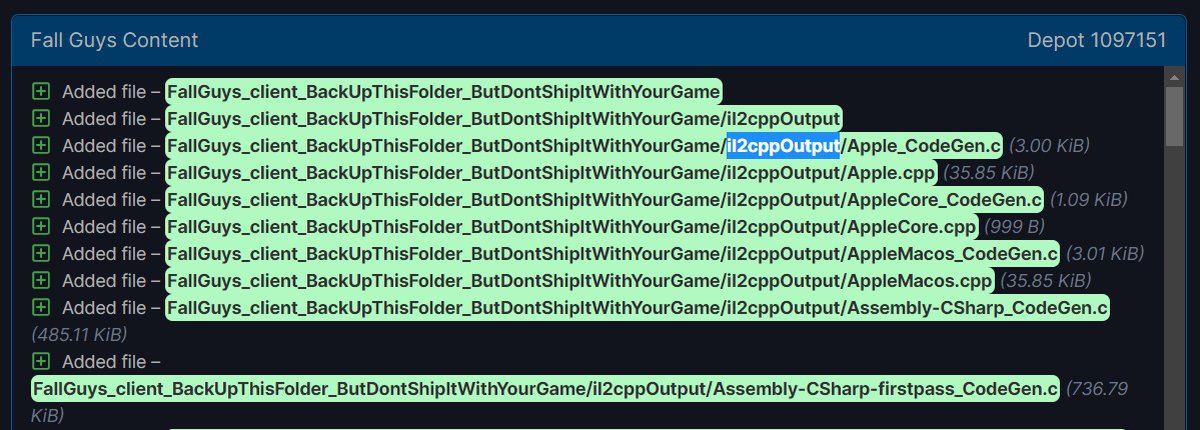Студия Mediatonic случайно опубликовала часть исходников PC-версии Fall Guys: Ultimate Knockout. Исходники были включены в дистрибутив вместе с последним патчем, на их публикацию обратил внимание Павел Дюндик, создатель SteamDB.