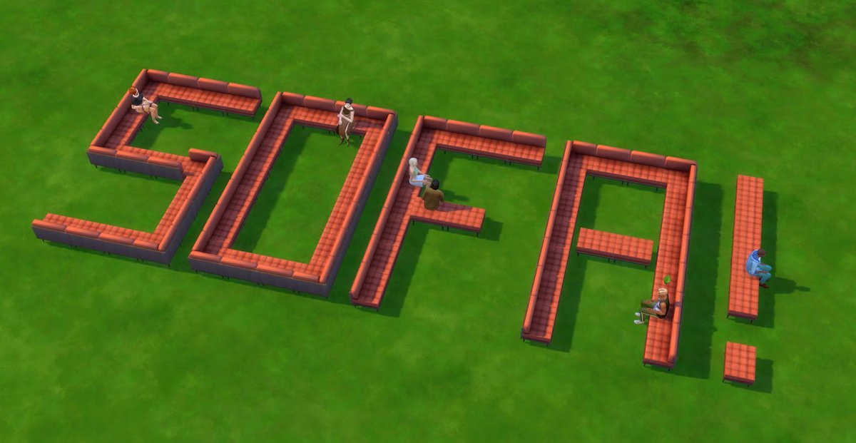 Новые диваны в The Sims 4 могут быть очень длинными: из них можно собирать слова