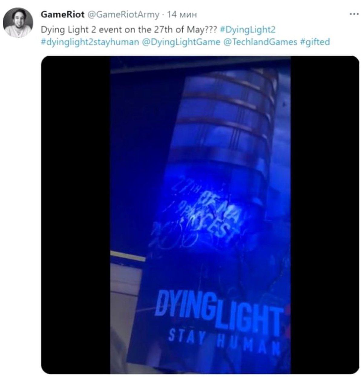 Студия Techland якобы готовится провести презентацию Dying Light 2. Судя по твиту, опубликованному ютубером GameRiot, презентация намечена на 27 мая и стартует в 10 вечера по Москве.