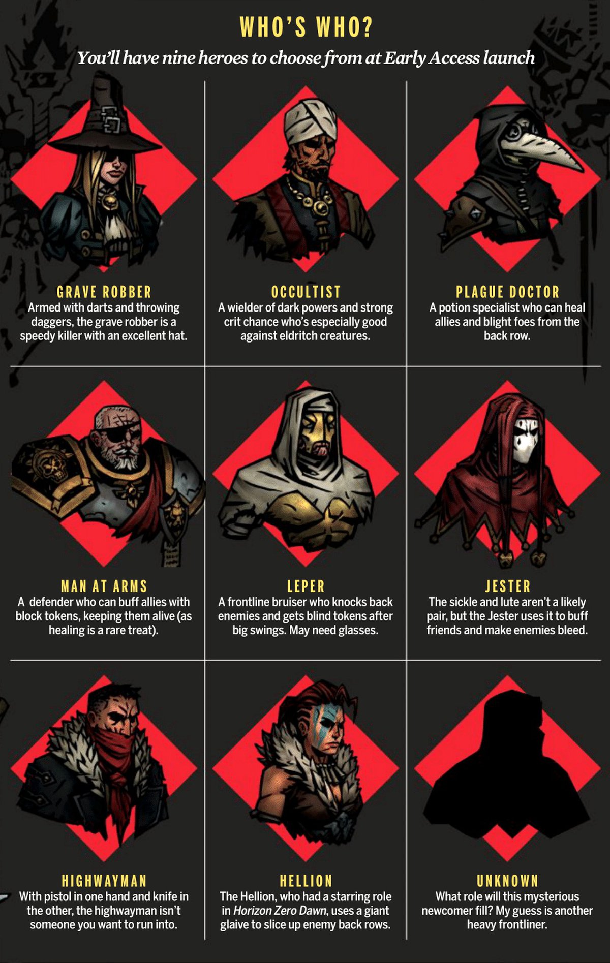 - Всего в ранней версии Darkest Dungeon 2 девять героев, восемь старых и один новый — про него разработчики пока не рассказывают.