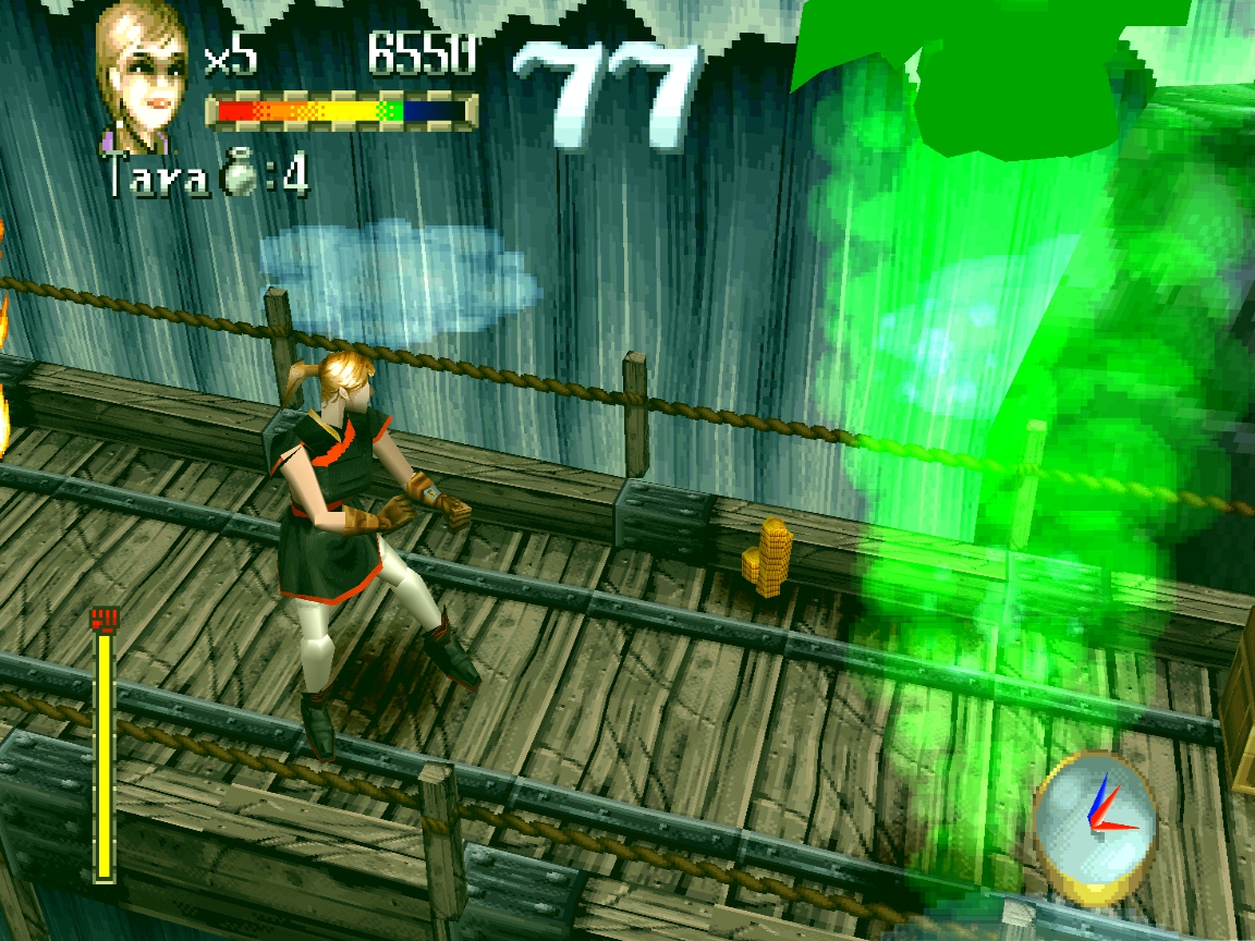 Сама же игра выполнена в жанре beat ’em up, то есть вы идёте и бьете всех на экране. Когда все побеждены — продвигаетесь дальше. Перед каждой битвой, а так же во время боя, могут падать ящики и бочки, в которых прячется оружие, еда или деньги. С мобов деньги и еда тоже падают. Где-то к середине игры, а она не длинная, помимо ящиков в вас начнут лететь огненные шары, огромные камни и прочие прелести, так что надо внимательно следить за экраном.