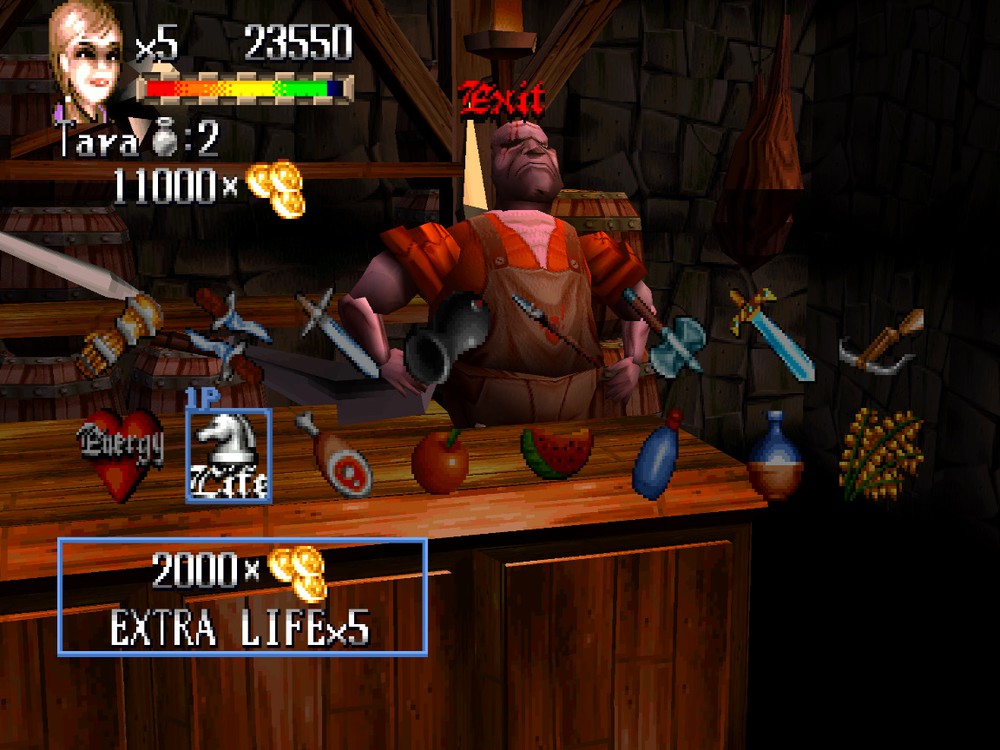 В конце каждой миссии вас будет ждать босс. После победы и окончания уровня идут бонус-уровни. Вы от первого лица стреляете из арбалета по врагам, бочкам и сундукам, собирая оттуда разные ништяки. Если быть точным, что не сложно, можно спокойно пополнить здоровье, набрать денег, бутылочек с маной и прочих вещей, хотя вот бонусная жизнь не выпадала, её, видимо, только покупать у торговца.