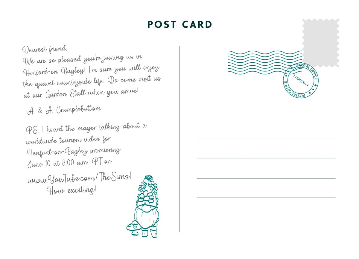 На это указывает текст открытки: она подписана семейством Крамплботтонов, персонажей The Sims 2. Полноценная презентация дополнения состоится 10 июня в 18:00 по Москве, трейлер аддона покажут на канале The Sims 4 в YouTube.