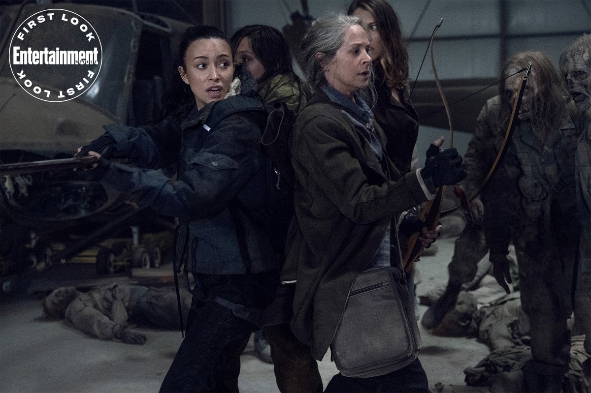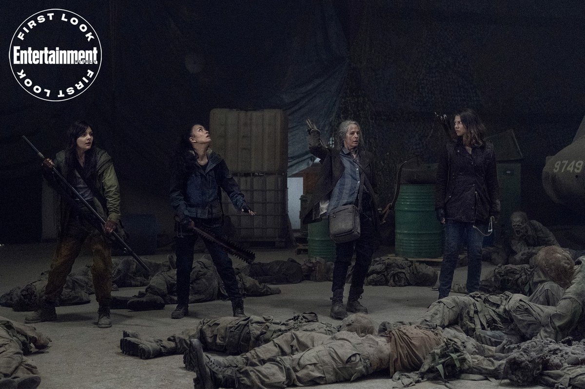 Редакция Entertainment Weekly опубликовала новые кадры финального сезона «Ходячих мертвецов». Похоже, в какой-то момент Мэгги, Кэрол и еще несколько персонажей окажутся в ангаре, заполненном зомби и военной техникой.