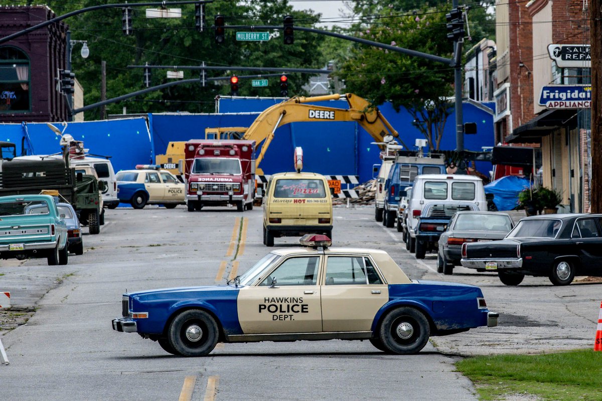 Съемки четвертого сезона «Очень странных дел» сейчас ведутся не в студии, а на перекрытых городских улицах: это позволяет фанатам следить за процессом. Metro публикует кадры со съемок — с масштабными разрушениями.