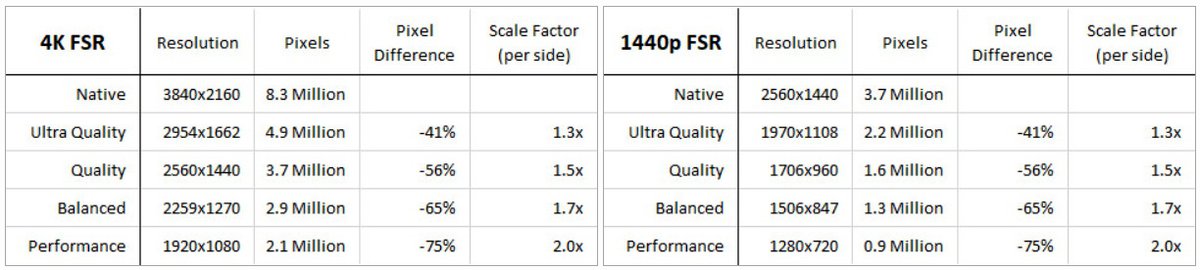 При использовании FSR игрокам предлагается четыре режима качества картинки: Performance, Balanced, Quality и Ultra Quality. Они различаются только реальным разрешением рендеринга, в Performance оно примерно в 4 раза ниже нативного.