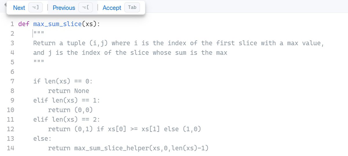Наконец, Copilot способен предлагать несколько вариантов кода, решающего одну и ту же задачу. Разработчики могут переключаться между вариантами сгенерированного кода прямо в редакторе Visual Studio.