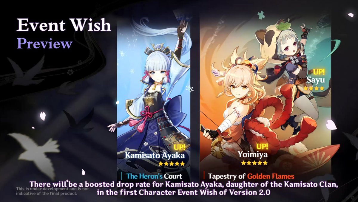Как и предполагалось, следующий патч получит версию 2.0 и выйдет 21 июля. Игрокам предлагается исследовать Инадзуму, группу островов в японском стиле, и познакомиться с местными жителями; некоторые из них станут играбельными персонажами.