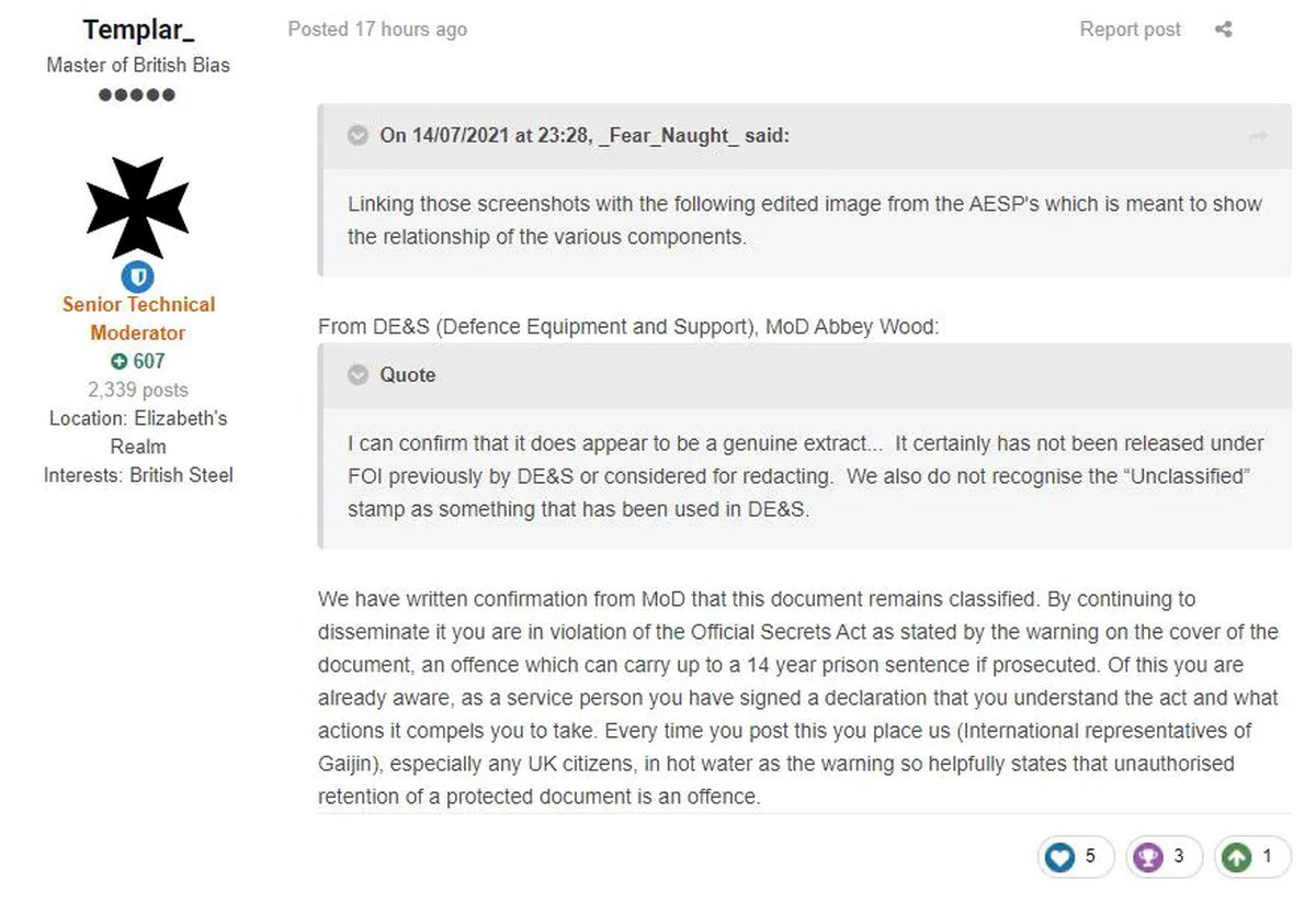Позже выяснилось, что информация остается секретной до сих пор. Разработчики рассказали, что получили подтверждение секретности Army Equipment Support Publication из Министерства обороны Великобритании.