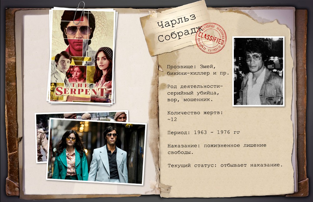 Для меня стал сюрпризом выбор Нетфликс, снять сериал именно по этому человеку. На фоне других серийников, Собрадж является наименее популярным и не таким кровавым (вспомните Генри Ли Лукаса). Обычно снимают про Банди, Гейси и Зодиака.